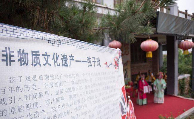 说到乡土风情,就不得不提当地的非物质文化遗产“弦子戏”。弦子戏是流传于鲁南地区的一种古老剧种,在临沂地方戏剧中占有重要地位。走进红石斋,首先映入眼帘的是一个戏台,表演的是弦子戏。