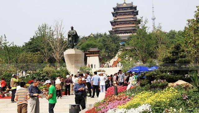 山东又一公园走红:因院内环翠楼得名,东广场有一尊雕像