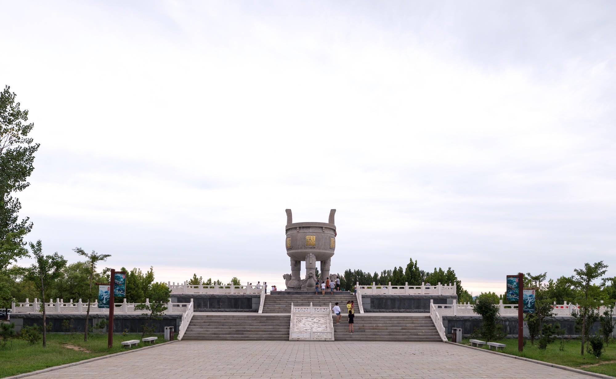 称“福寿康宁鼎”。形体硕大,直径6.19米,高9.99米。面积近500平方米,重量达到600多吨。它是当今世界上最大最重的三脚架。远远望去,感觉无比震撼和庄严。