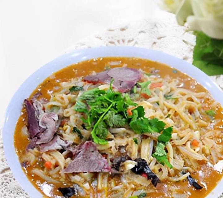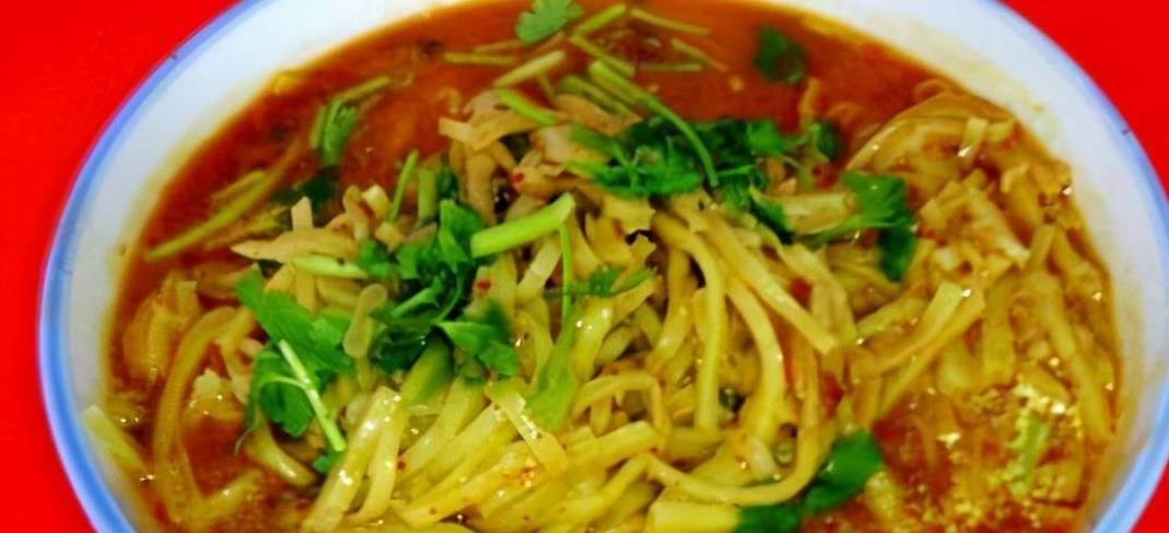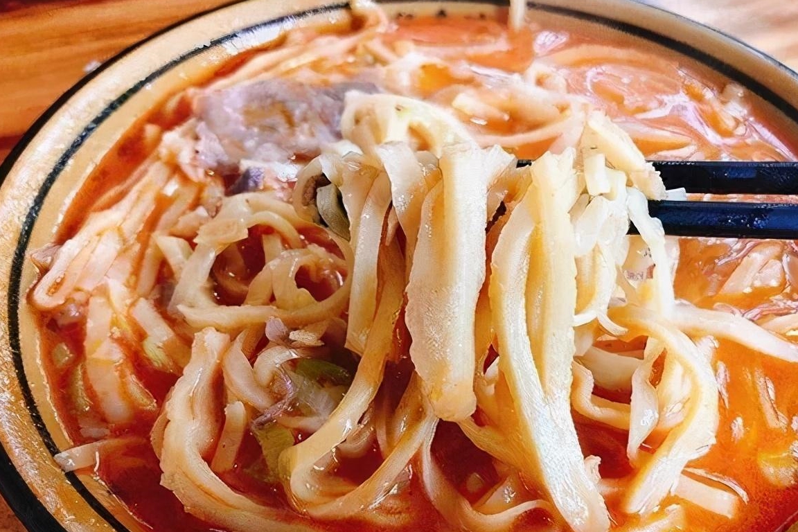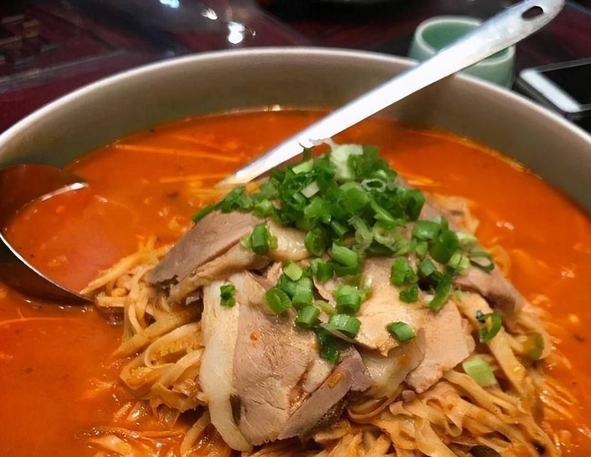 其实总得来说,羊肉胡卜就是把烙熟的白面薄饼切成丝条状,加鲜羊肉汤煮烩,再调以香油、葱花、香菜、辣椒等调之以味,原理上和西安的羊肉泡馍没有什么太大的不同。