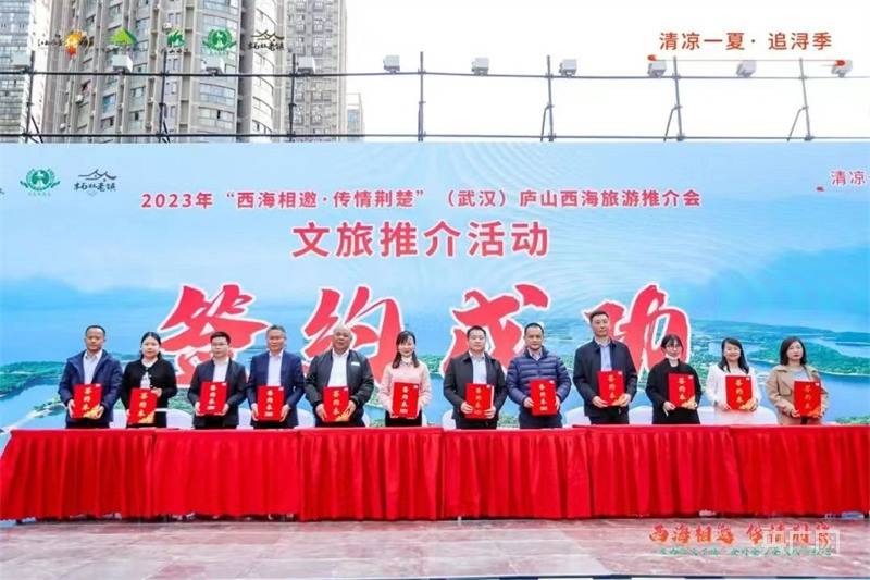活动现场,庐山西海风景区分别与湖北省武汉市旅游协会、中青旅湖北国际旅行社,江西华邦传媒有限公司(百度江西运营中心)等代表签约旅游战略合作协议。