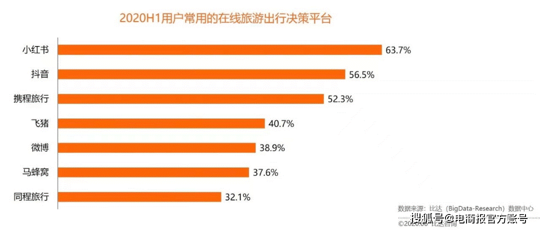 第三方机构报告显示,2020年上半年,小红书、抖音超越携程、飞猪、同程等OTA平台,成为用户最常用出行决策平台。