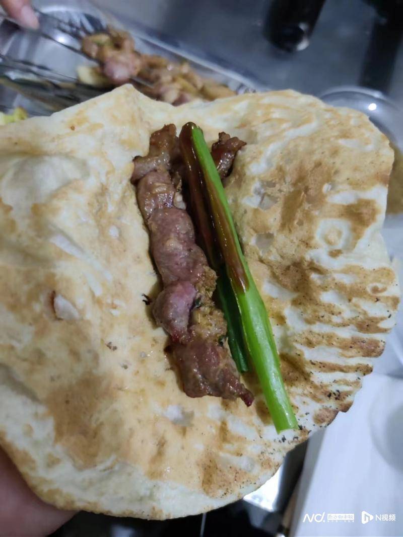 李颜一边忙着给烤串翻了个面,一边笑着说,“我最喜欢的就是吃烧烤时可以自己动手的参与感。”淄博烧烤大抵离不开一个组合:烤炉、小饼与蘸料,灵魂烧烤三件套。烧烤师傅将七八分熟烤串端给客人,由食客根据自己喜好口感继续烤制。淄博烧烤的正宗吃法也充满着仪式感:小饼一折,沾上酱料,放上小葱,再将肉串用饼撸下来。一道正宗的淄博烧烤卷饼就做好了。