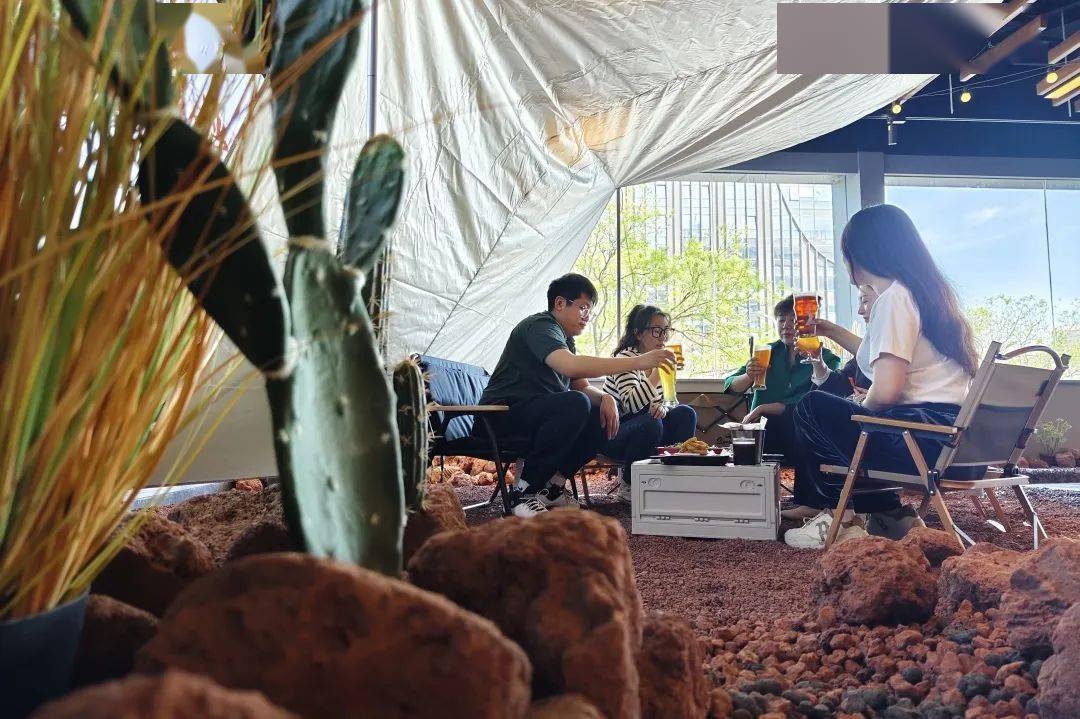 不想远行,郊区露营还是在考虑的。但是不知道路堵不堵,天气好不好,玩疯了的娃安全与否……不如来 西西友谊二层刚刚开业的室内露营餐吧 “66号公路精酿餐吧”。抬头看到的是天幕,脚踩到的是石子,坐进露营桌椅,点上合口味的精酿啤酒和下酒小食,还有小朋友喜欢的薯条和汉堡,不用担心暴晒或下雨,全家人或三五好友在市中心欢聚,却仿佛置身千里之外的66号公路。