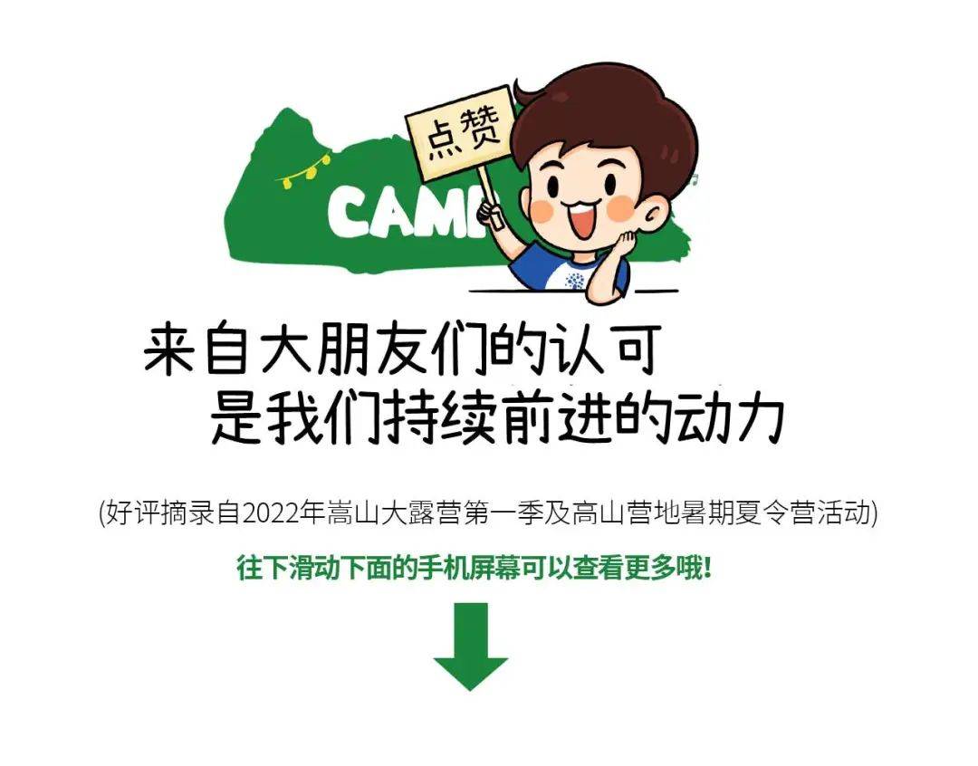 小记者们大家好,大自然不仅是我们的老师,更是我们的好朋友,面对问题我们应该主动去解决而不是逃避,真正的走出去,自己找到答案。带着好奇,小记者们来到高山营地,参加了为小记者们精心策划的《嵩山大露营》活动,在这里他们不仅拥抱了大自然,还邂逅音乐,品尝美食,享受了一次美好的露营体验。小记者们在欢欣雀跃的同时,还感受到了出行带给自己的欢乐和成长的力量,他们也为即将开始的暑假生活积累了出行的经验。