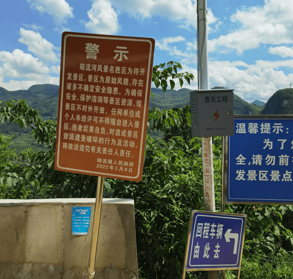 羊皮洞瀑布入口处设置的警示牌。新华社记者 向定杰 摄