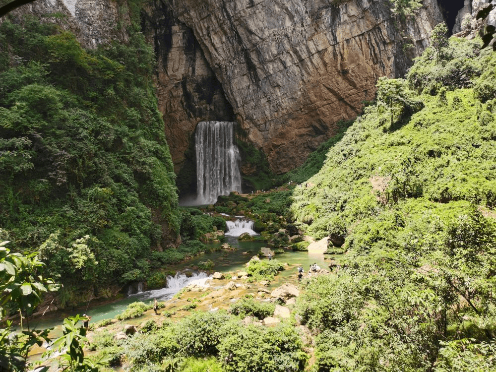 网红打卡地羊皮洞瀑布。新华社记者 郑明鸿 摄