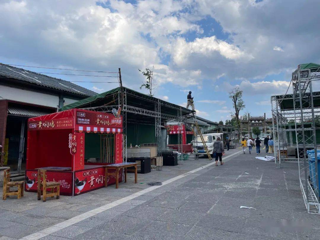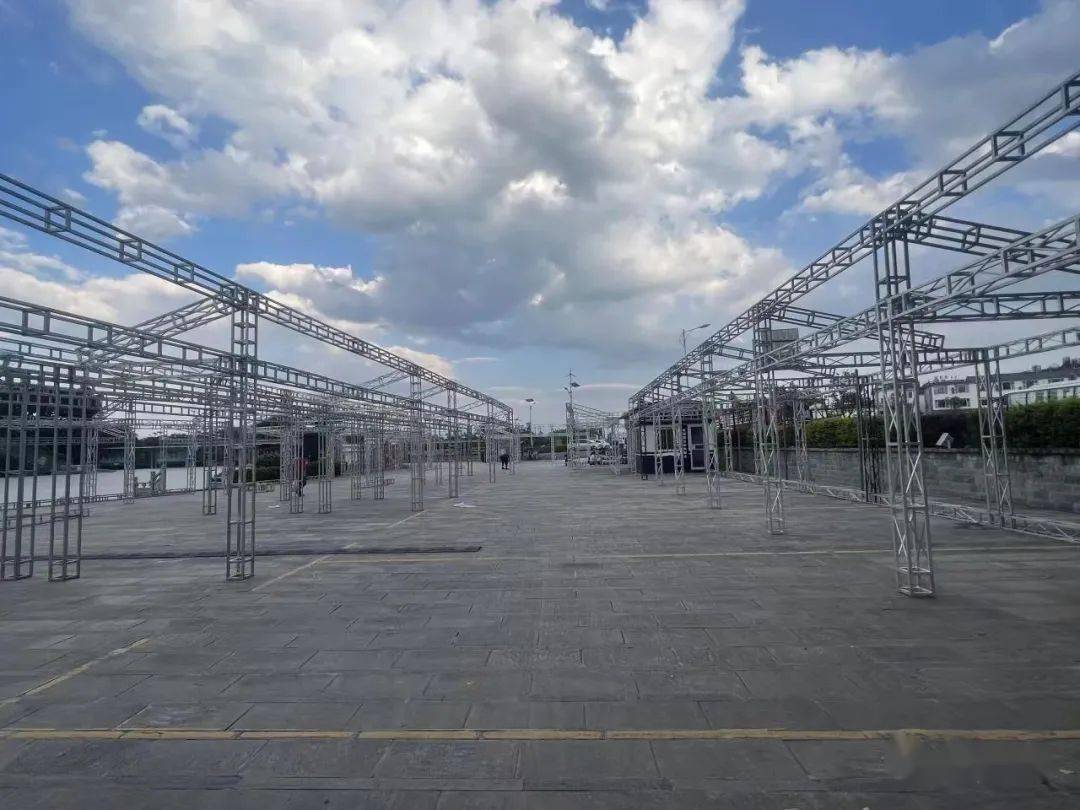 在南国城分会场,记者看到展位框架等硬体已搭建完成,正在进行喷绘、舞美等软件工程。据了解,南国城分会场由省州非遗展示、12县市土特产展销、东南亚特色商品展销、经贸合作招商、文旅宣传、商务办公+直播、精品品牌区、12县市小吃、咖啡音乐文创市集等区块构成,共设置近500个展位。“目前,南国城分会场咖啡音乐文创市集正在开展招商,精品品牌区还有少量余位,其他区块展位基本已招满,商户和摊主预计在‘五一’假期前即可入驻。”大理方圆音画传播有限公司总经理蒋云磊介绍,符合咖啡音乐文创主题、展示面较广的摊主可以通过大理床单厂艺术区微信公众号报名通道,加入南国城分会场的咖啡音乐文创市集。