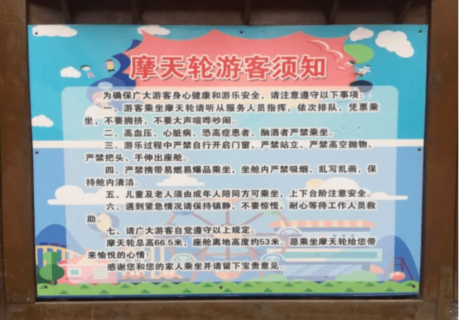 仔细阅读乘客须知。当你决定要玩某一游乐设施时,请一定要仔细阅读“乘客须知”或“乘坐须知”及相关的“警示牌”。每种设施都根据它的运动特点对乘客做出了一定的限制,例如:年龄、身高、体重、身体状况等等。“乘坐须知”会告知一些非常重要的注意事项,同时提出哪些人不宜乘坐过山车、海盗船、太空飞梭、勇敢者转盘等激烈刺激的游乐设施。