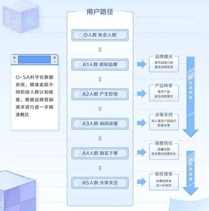 PS:不同认知属性的人群模型:「O-5A」模型是将消费者从感知品牌到最终下单过程分为「感知-好奇-询问-购买-分享关注」五个阶段。