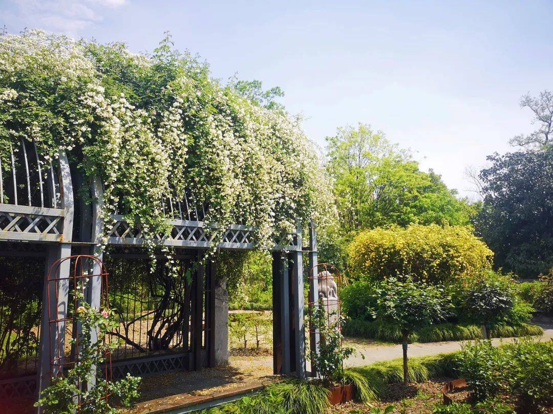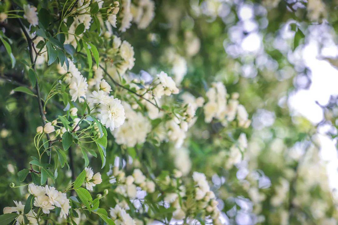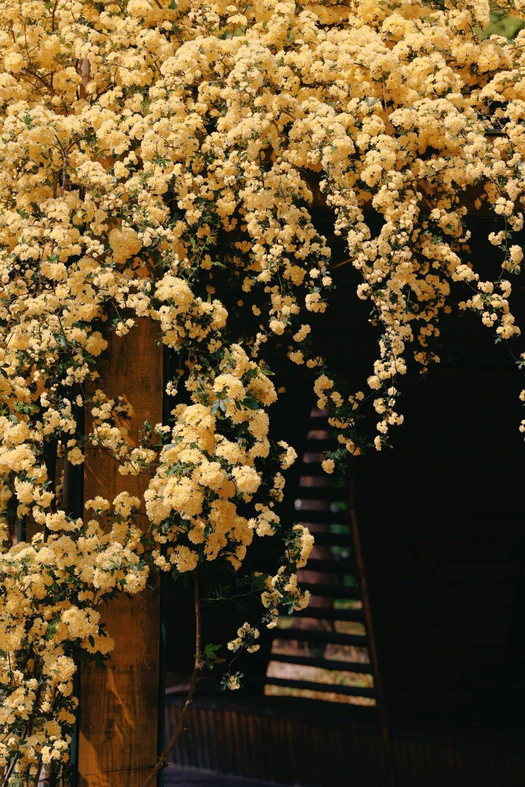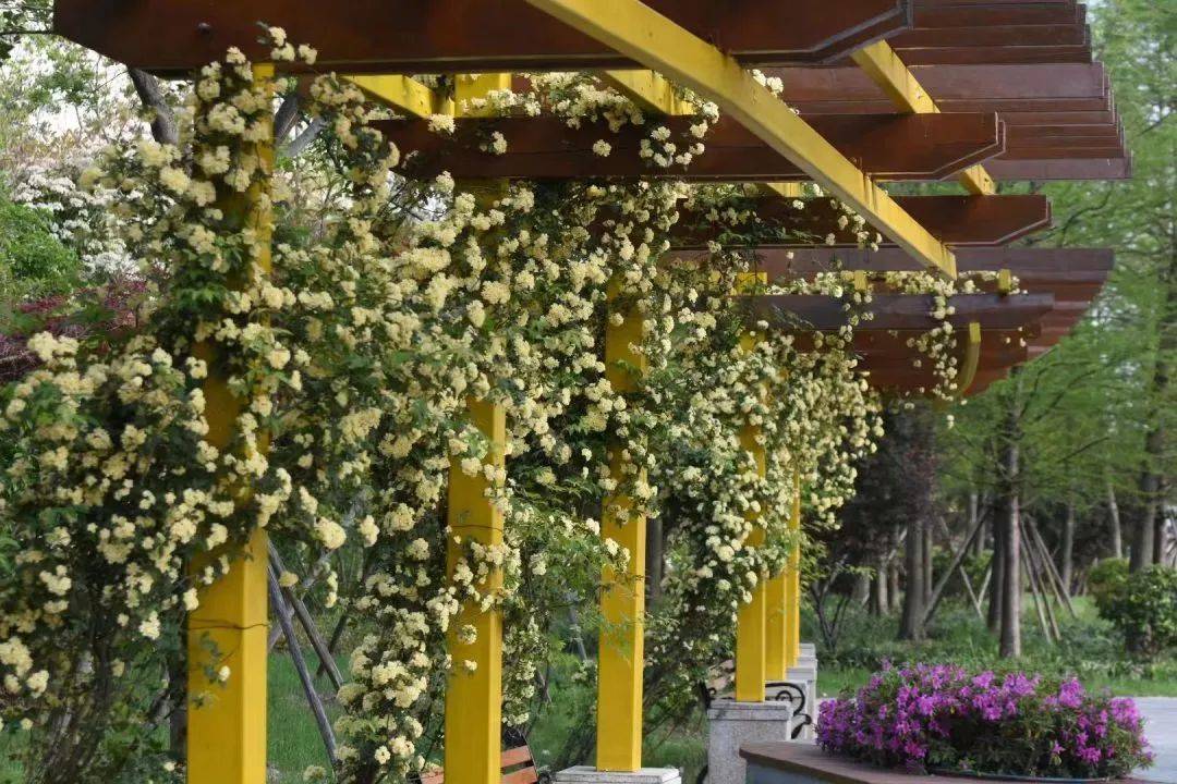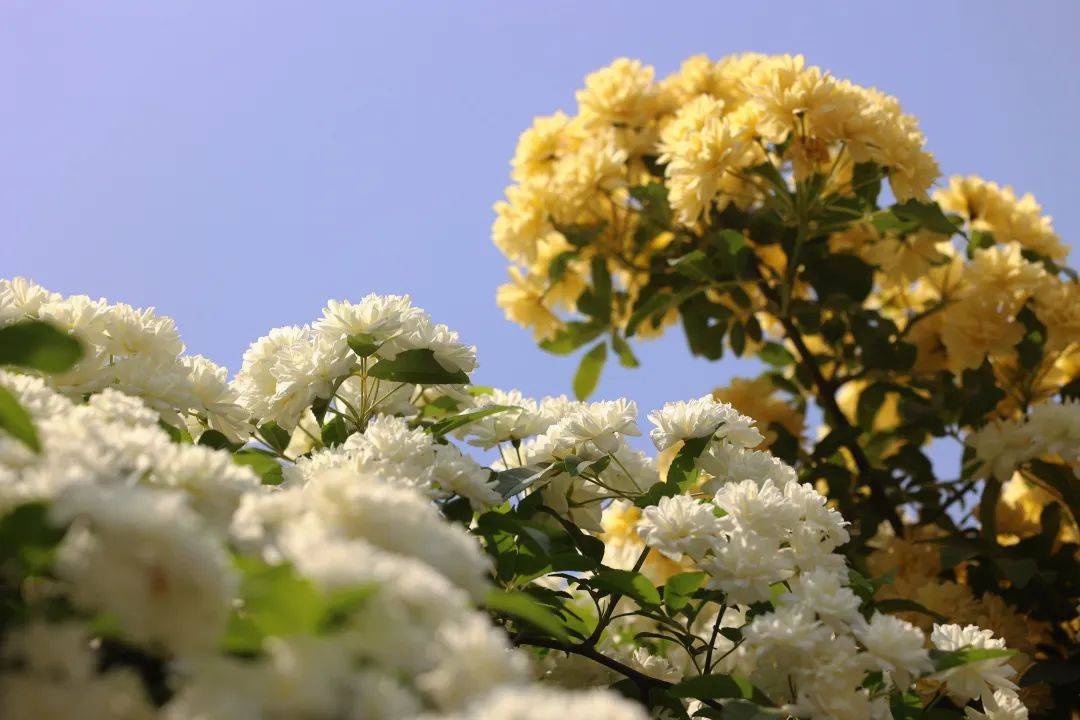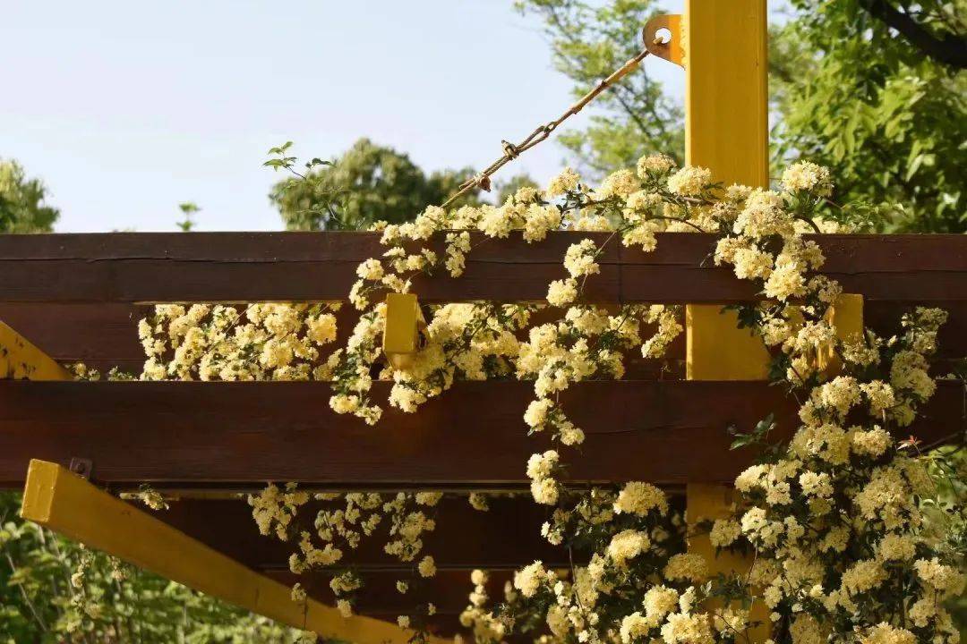 市绿化市容局介绍,申城的四月除了“C位”木绣球外,月季初绽,木香盛开,其黄色的如砌金,白色的如堆雪,花开繁复,碎玉飞瀑,铺叠满架,蔚为壮观,恰似缤纷的花海瀑布。一起来赏↓