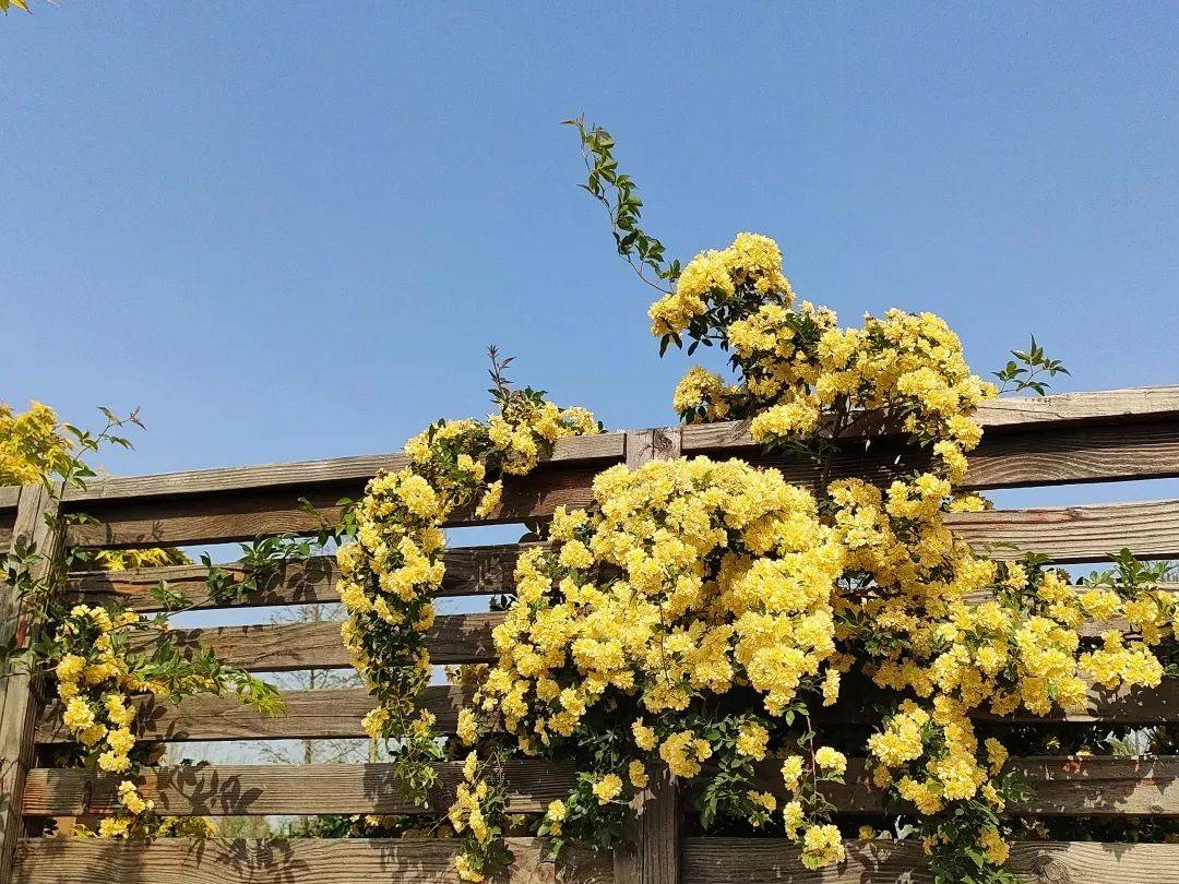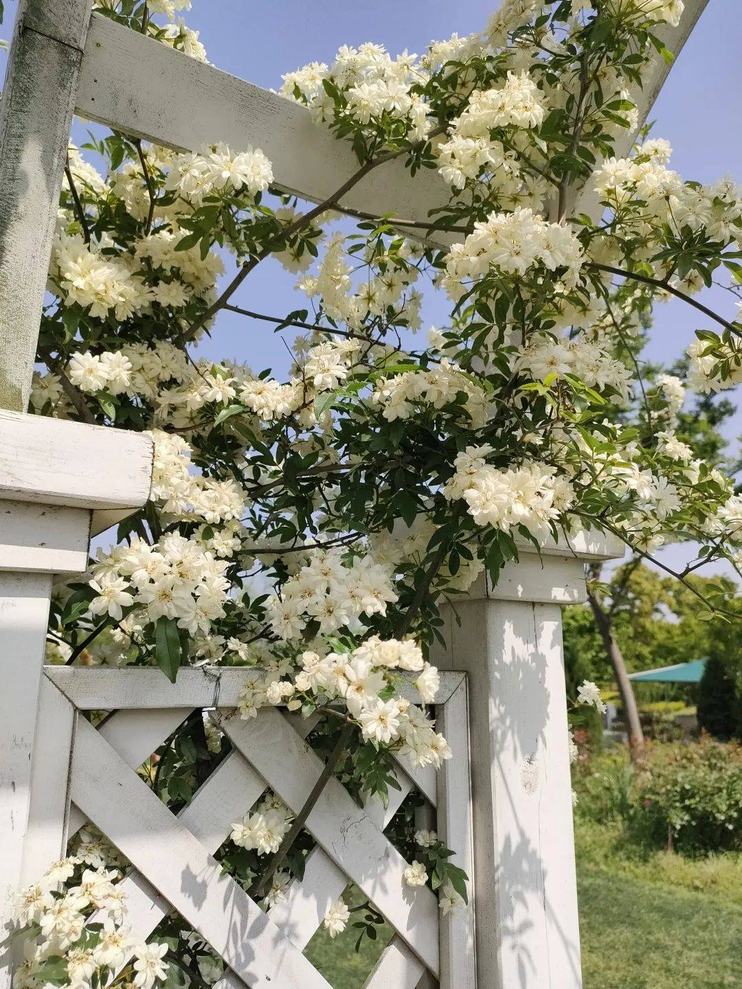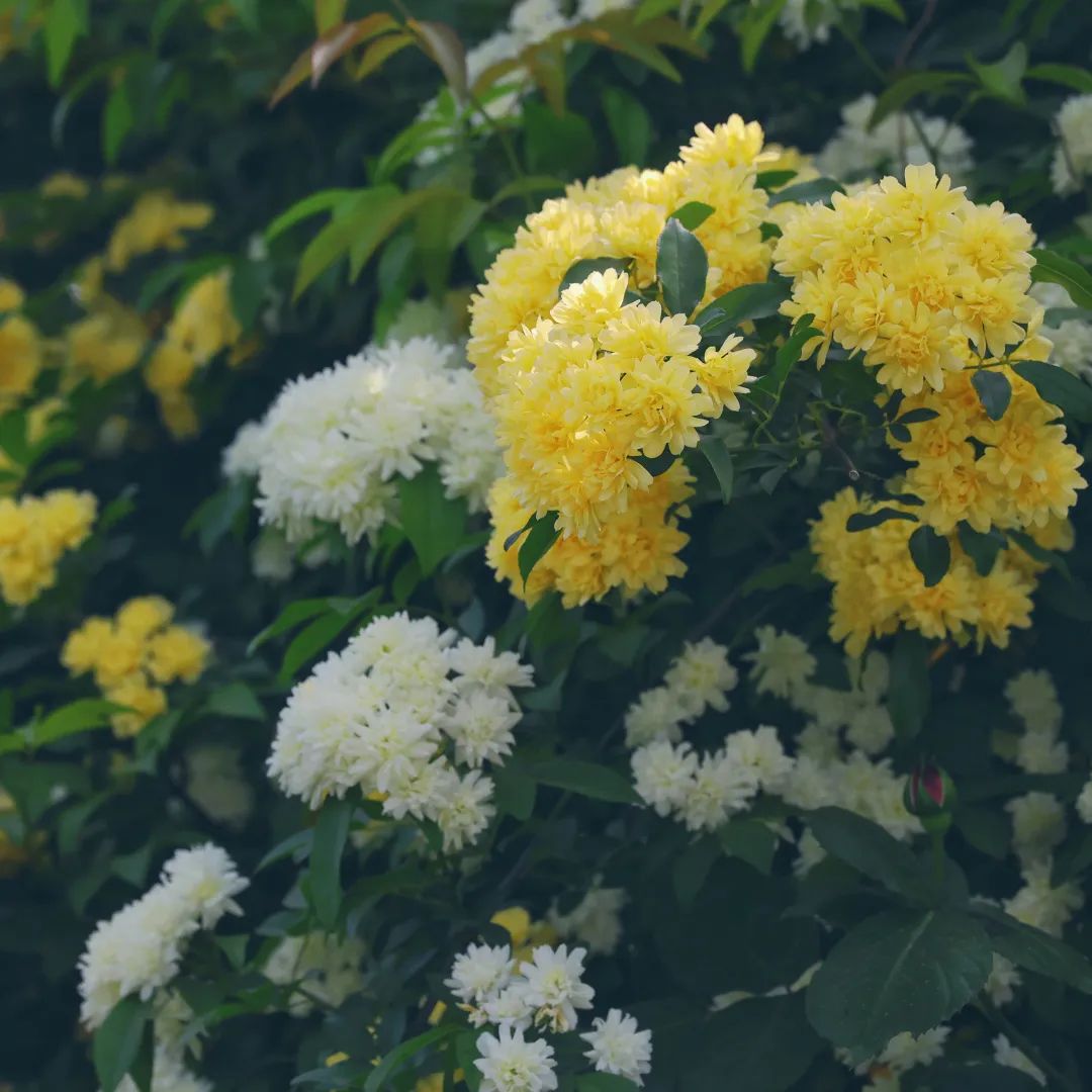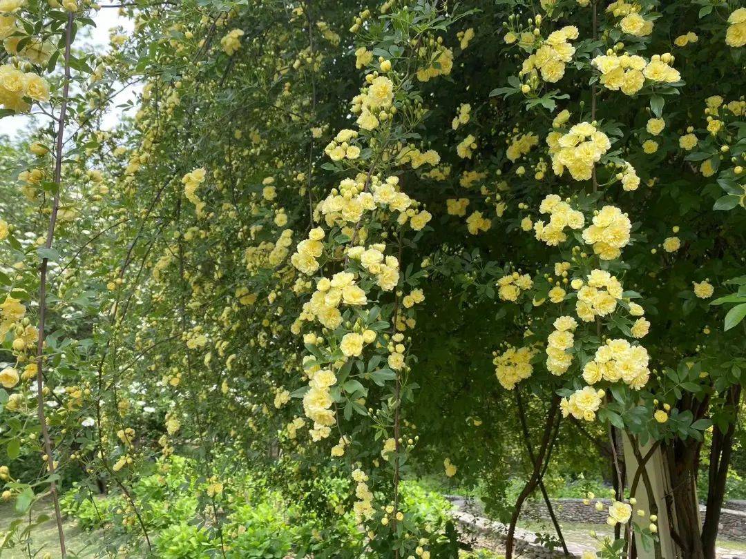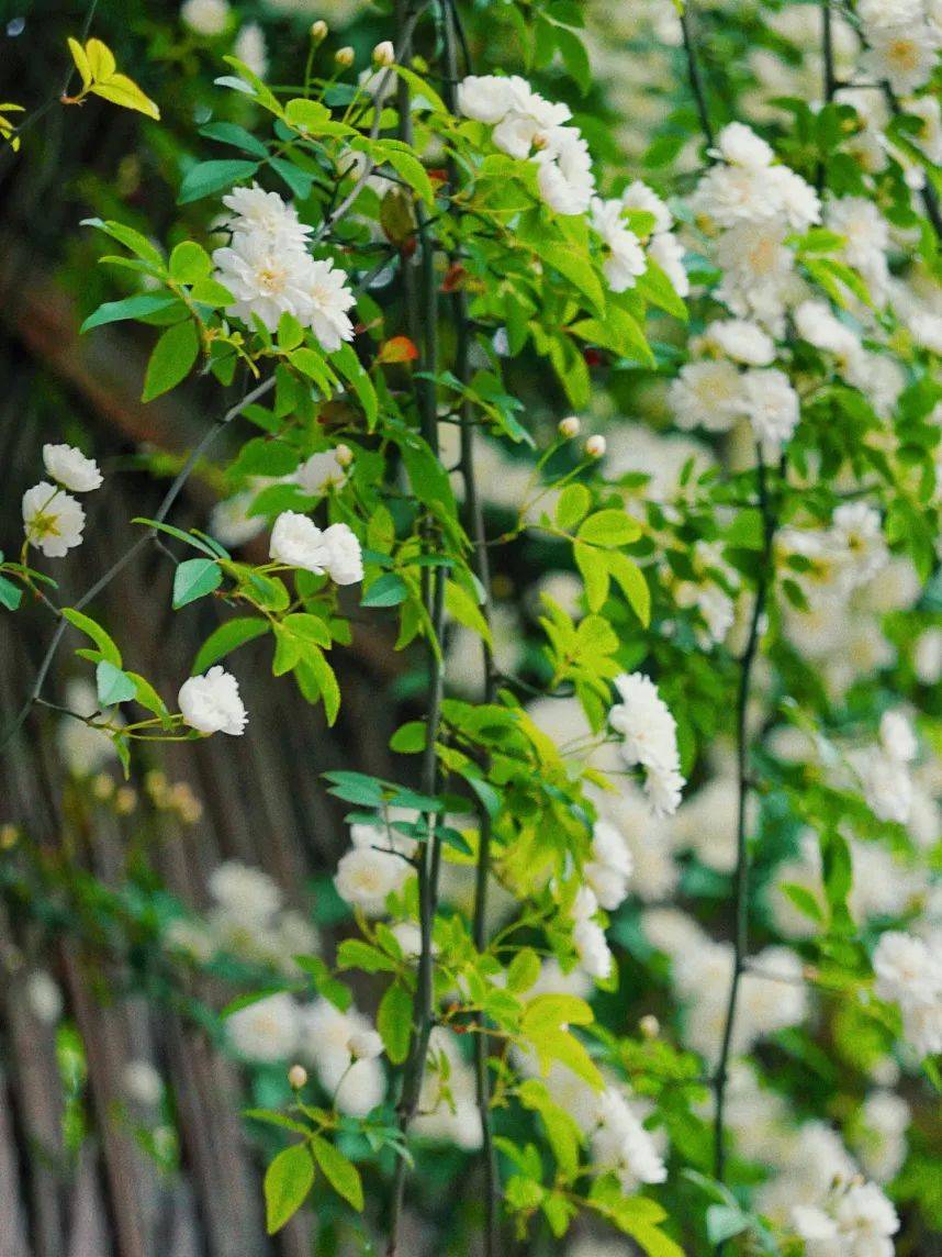 市绿化市容局介绍,申城的四月除了“C位”木绣球外,月季初绽,木香盛开,其黄色的如砌金,白色的如堆雪,花开繁复,碎玉飞瀑,铺叠满架,蔚为壮观,恰似缤纷的花海瀑布。一起来赏↓