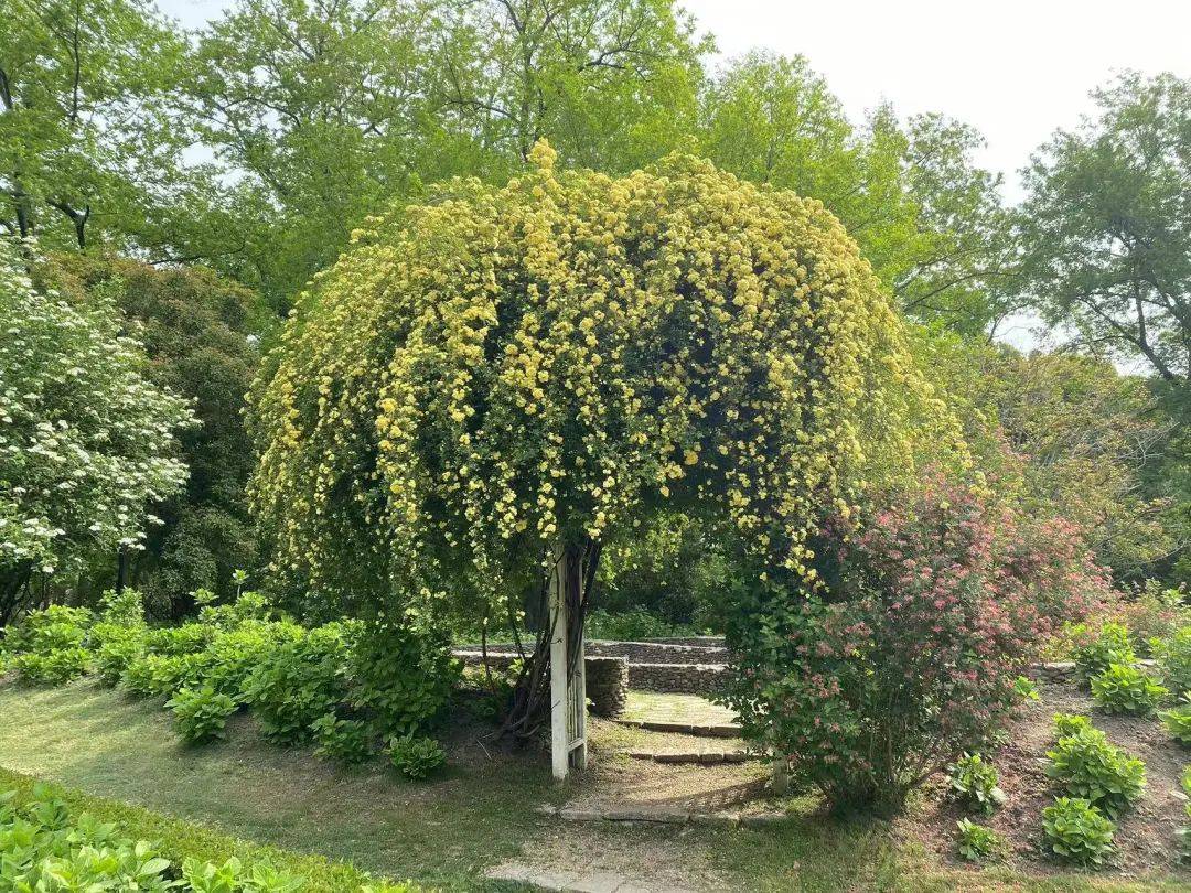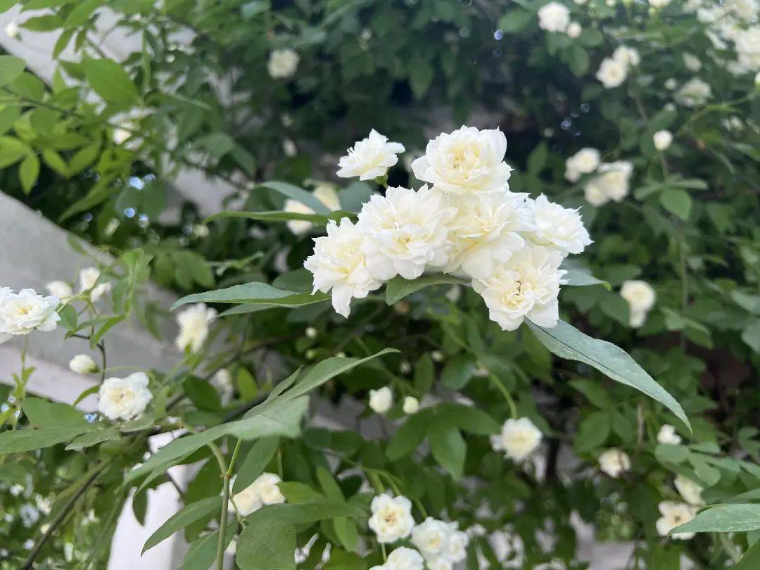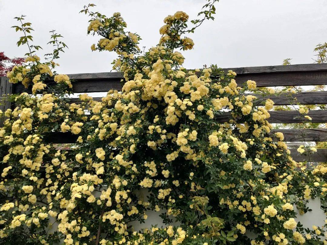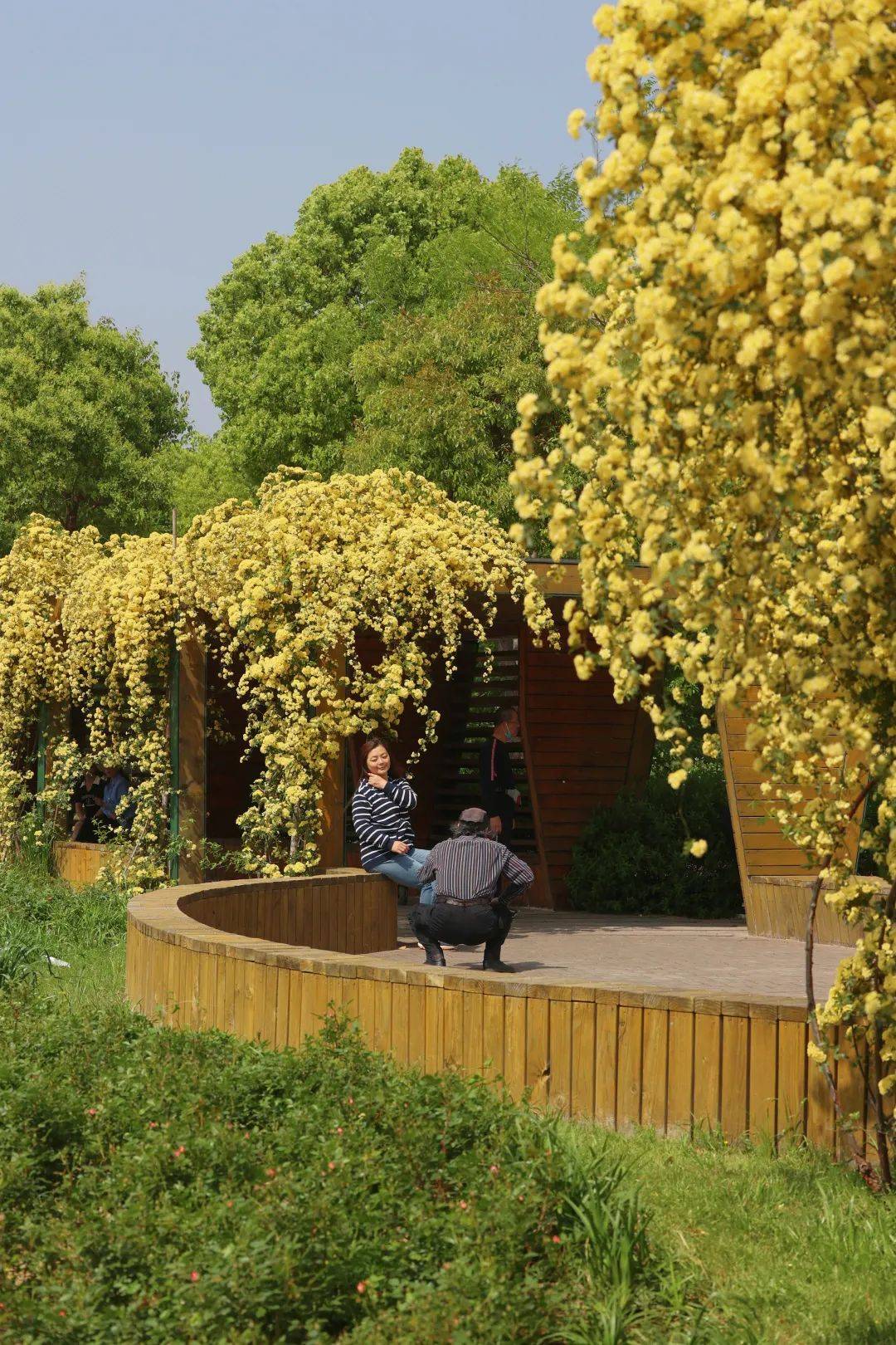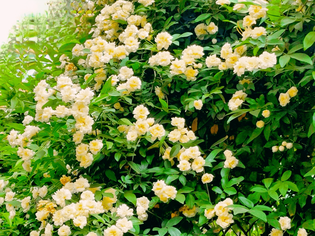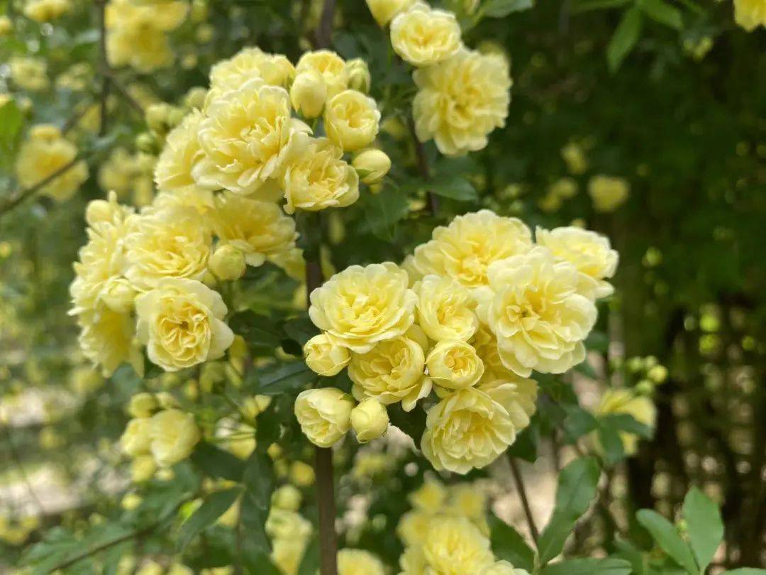 市绿化市容局介绍,申城的四月除了“C位”木绣球外,月季初绽,木香盛开,其黄色的如砌金,白色的如堆雪,花开繁复,碎玉飞瀑,铺叠满架,蔚为壮观,恰似缤纷的花海瀑布。一起来赏↓