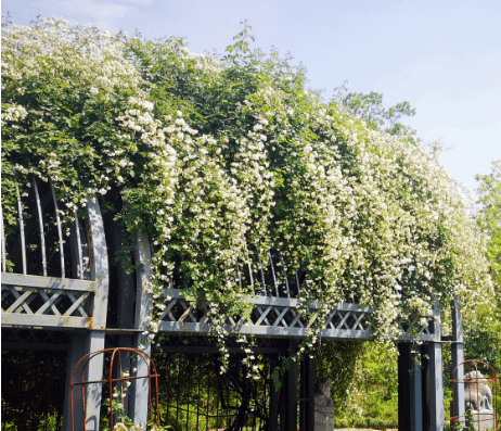 木香花是蔷薇科蔷薇属半常绿攀援灌木,又称木香藤、七里香。花白色,多朵并开成伞形花序,花含芳香油,可供配制香精化妆品用。和黄木香花都是产自我国,常栽培供攀援棚架之用。