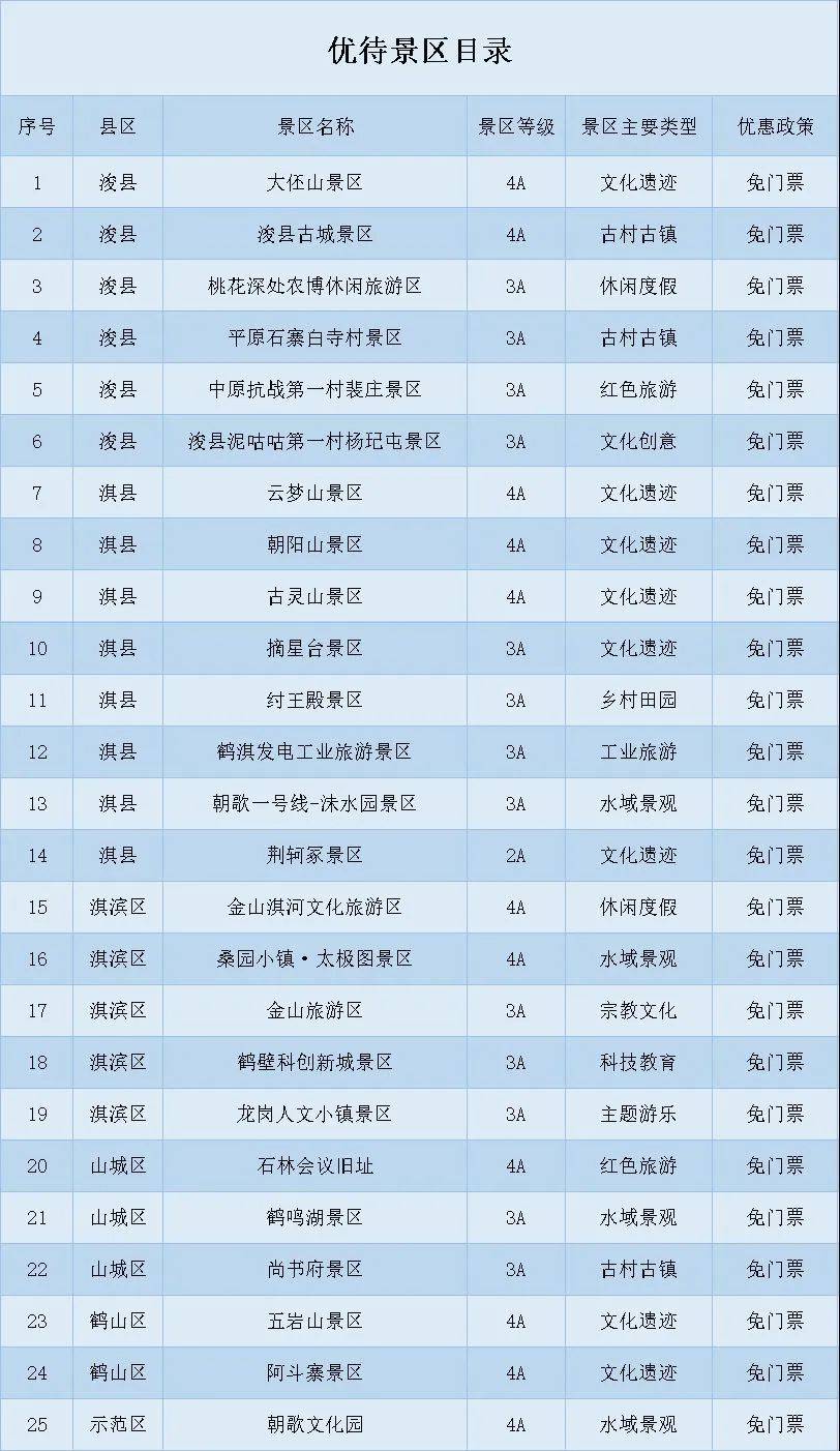 4月23日,微信公众号“鹤城双拥”发布消息:退役军人及其他优抚对象持优待证乘坐鹤壁市公交、游览景区享受减免优待。详情如下: