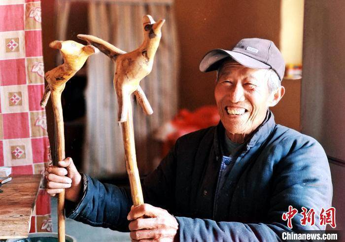 今年82岁的刘绪芝,从二十几岁便开始从事根雕的制作,经过多年摸索,设计出了以十二生肖为原型的根雕拐杖。其根雕作品,以模仿自然形态为主,加以少量的雕凿、打磨,通过丰富的想象力和创造力,将自然材料变成惟妙惟肖的生肖形象,然后打磨上色成为一件独居特色的根雕艺术品,极具实用价值和观赏价值。