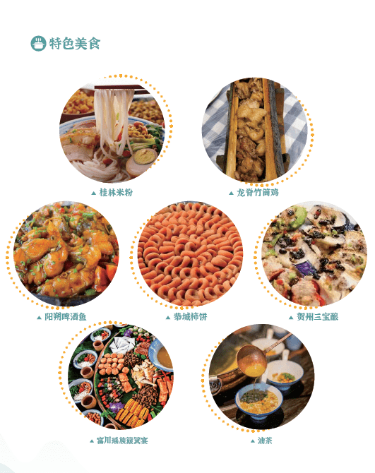 桂北山水田园观光游以桂林和贺州秀丽的自然风光,还有丰富多彩的人文风情等资源为依托,挖掘特色山水古镇,民族村寨,打造桂北休闲田园乡村旅游片区。