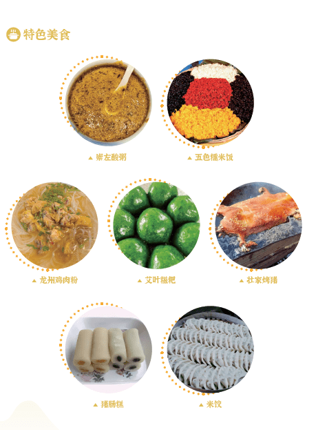 看龙州壮族特色活动抢花炮,品尝壮族五色糯米饭。听龙州天琴,中越边境的流行乐器演奏,织色彩斑斓的壮锦,体验古老纺织的手工乐趣。
