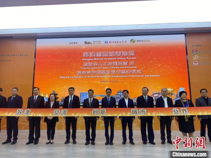 中新网扬州4月26日电 (记者 崔佳明)美食文化是中华文化的瑰宝,也是推动城市创意发展、促进城市间交流的重要力量。26日,“苏澳创意城市论坛·旅游业人才培训交流暨校企合作框架协议书签署仪式”在江苏扬州市职业大学举行。江苏省港澳办一级巡视员张松平表示,此举必将推动苏澳文化交流和旅游合作迈向新阶段,为大力弘扬中华优秀文化,促进两地民心相通、共融发展发挥积极作用。