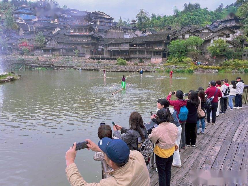 人民网遵义4月26日电 (陈洁泉)芳菲四月,在贵州乌江寨国际旅游度假区内,一场独竹漂表演引来无数游人驻足观赏:一人一竹,一袭长裙,脚踩竹竿,穿行乌江碧波上翩翩起舞,或抬腿,或下腰,或转圈……神奇的“水上功夫”将中华传统文化的韵味展现得淋漓尽致。