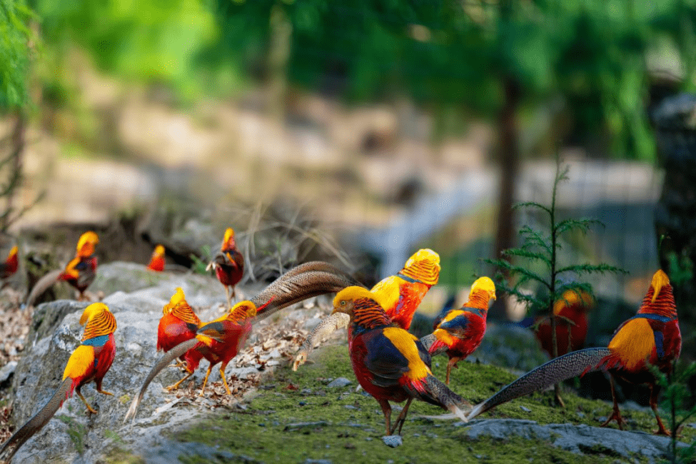 九皇山作为国家森林公园,森林覆盖率极高,负氧离子爆棚,非常适合动植物生长。园内现有国家二级野生保护动物红腹锦鸡、国家一级保护植物红豆杉等稀有动植物,游客们可以在百鸟园、尔玛古道、天梯、猿王洞等地徒步吸氧,尽情畅快呼吸。