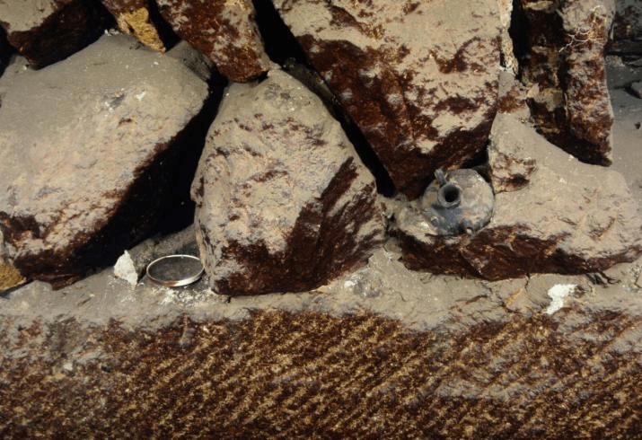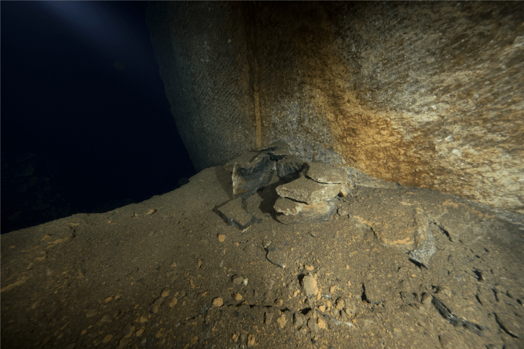 通过潜水调查发现,内洞主要的采石工作面被水体淹没,避免了自然风化和人为破坏,其水下遗存,如开采痕迹、开采工具、生活用具、石料半成品等相当丰富,并且依然保持着原样。
