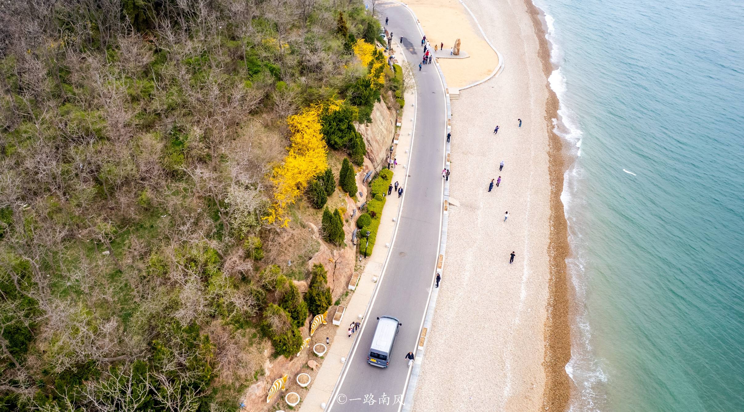 沿着曲折的海岸线漫步,一路上风光无限,海边公路旁边散布着不同风格的别墅群,有的中西结合,有的为异域风情或民族风情,还有仿轮船造型的船式楼,在阳台上观星望海就像站在甲板上一样。