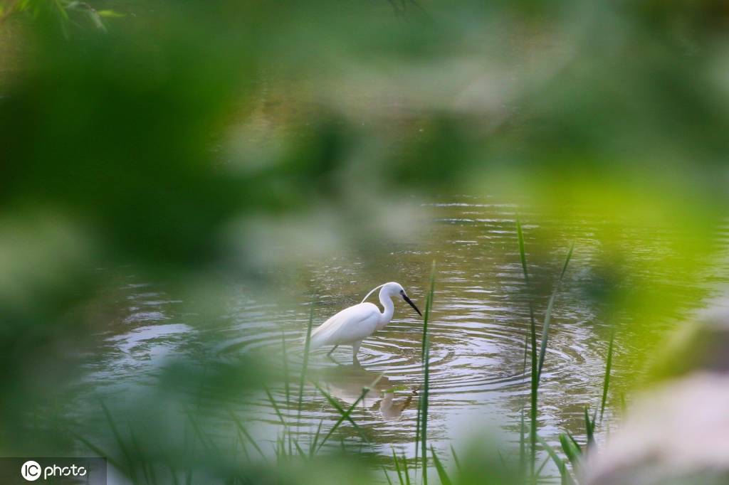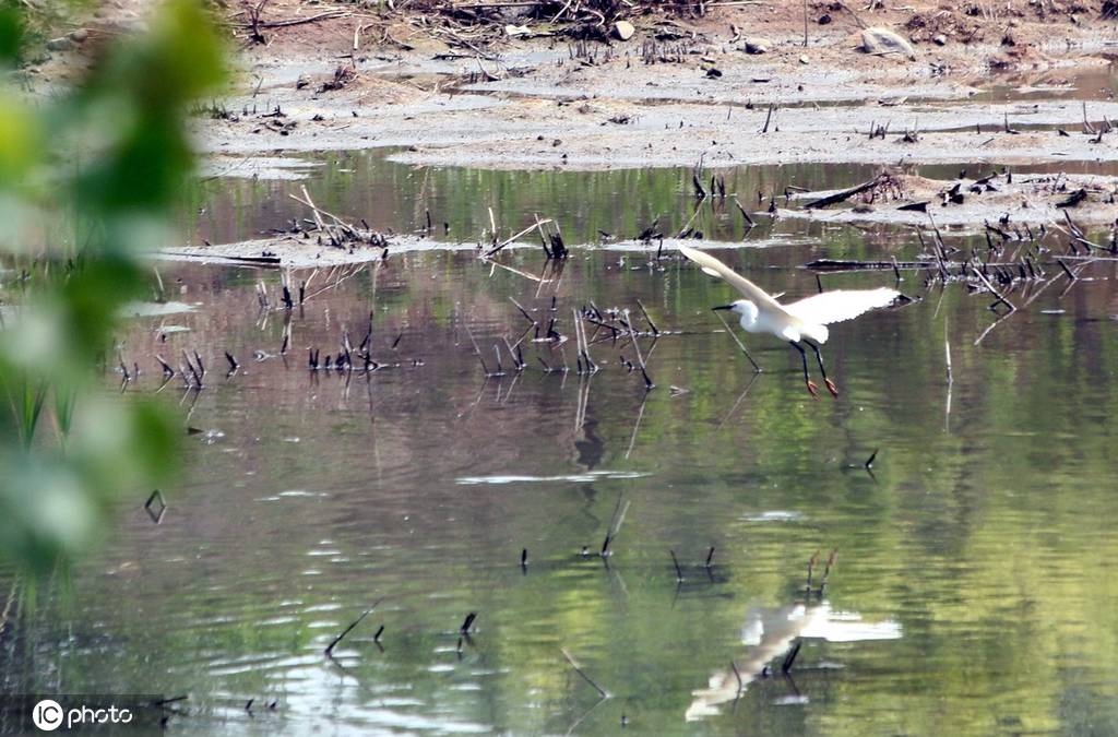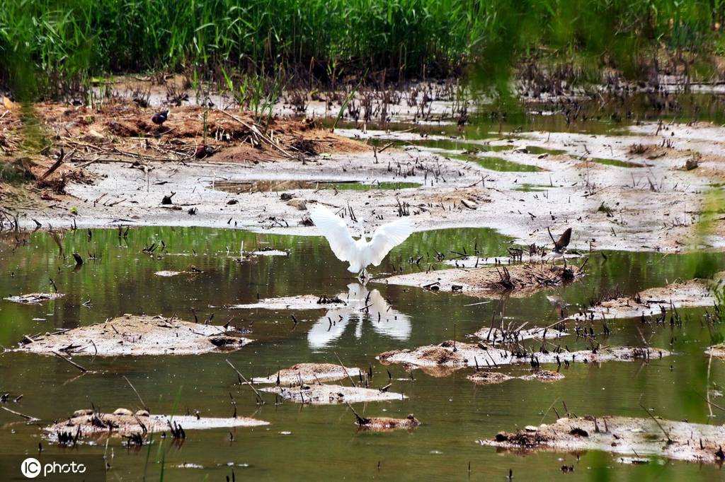 山东省邹城市,大束镇匡衡湖湿地春意盎然、生机勃勃,丰富的食物吸引大批白鹭、斑嘴鸭、黑水鸡等“精灵”前来觅食栖息。