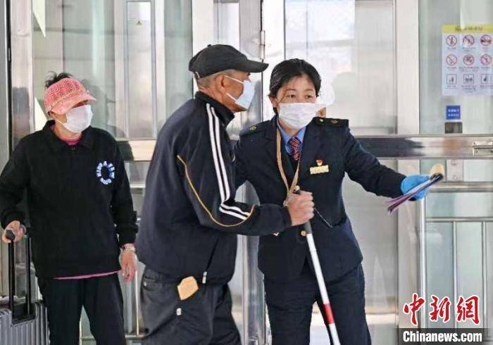 工作人员引导旅客进站 本溪车务段 供图