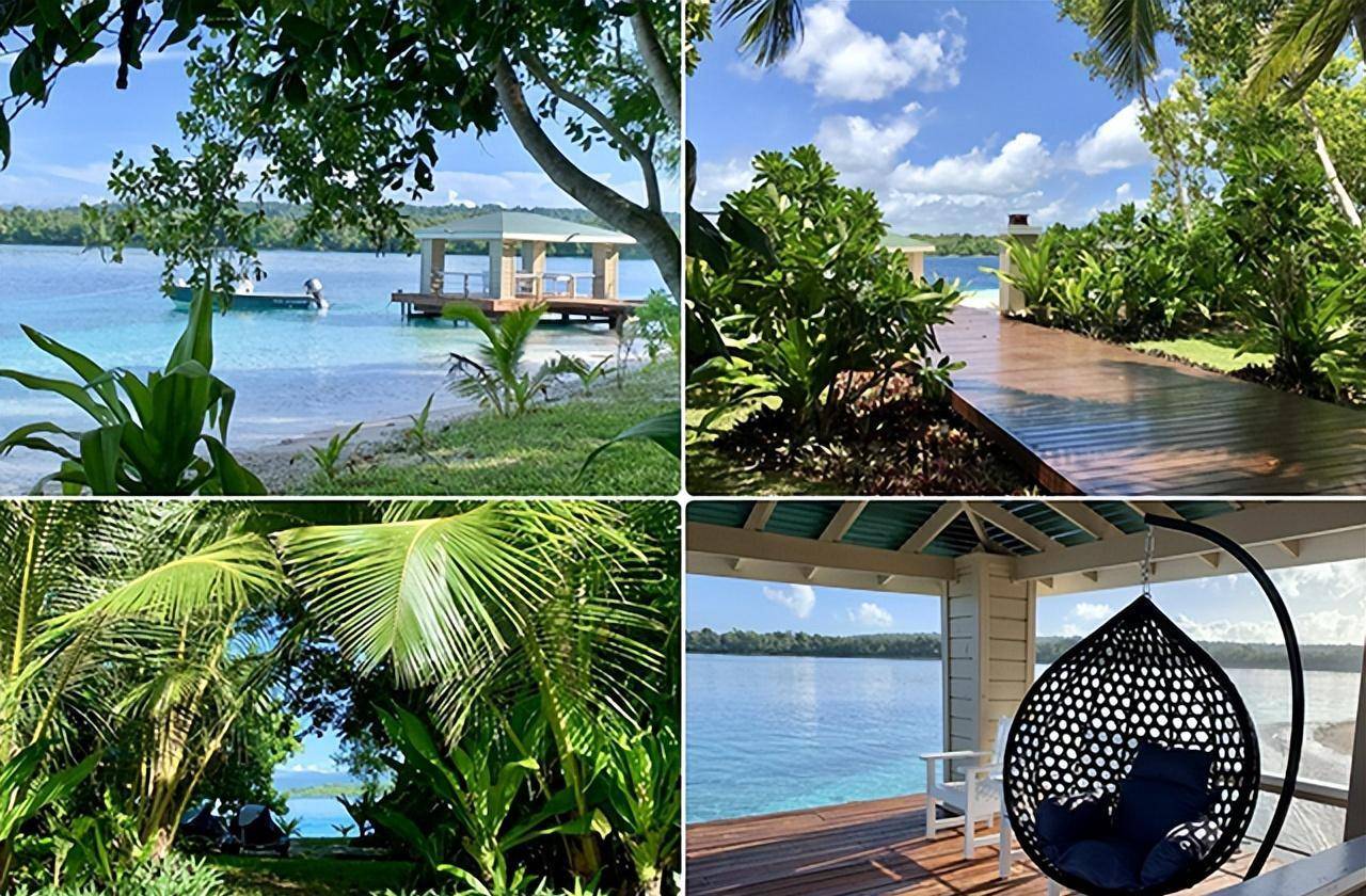 洁白无瑕的海滩。宁静的蓝绿色海水中只有零星的海龟和鱼群。修剪整齐的棕榈树下,有一个豪华的房子,阳台周围是海景。一条木板路将你带到一个木制码头,尽头是一个隐蔽的亭子。想想日落喝酒,或者坐看日出——它朝北。坐船20分钟就能到达这个国家的第二大城镇卢甘维尔。
