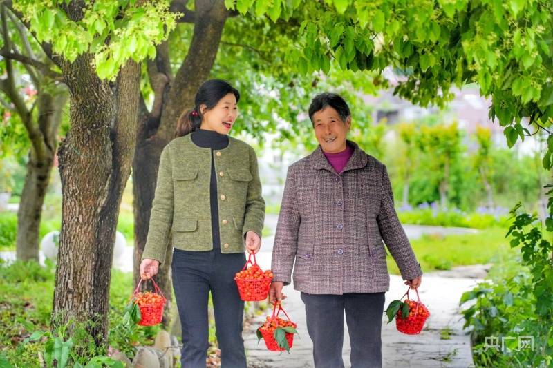 游客采摘樱桃满载而归(央广网发 程力 摄)