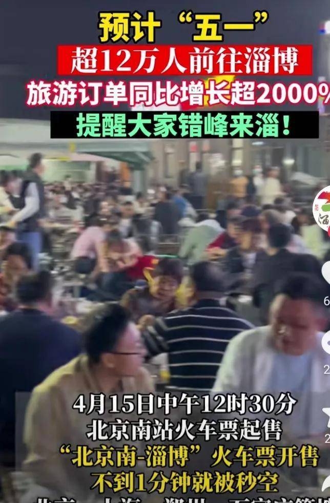 而淄博烧烤的爆火也将持续很长一段时间。各地通往淄博的高铁火车票早已经纷纷售罄。周边景点的接待量早已经突破历史极值,超过了以往同比上涨了百分之两千以上。
