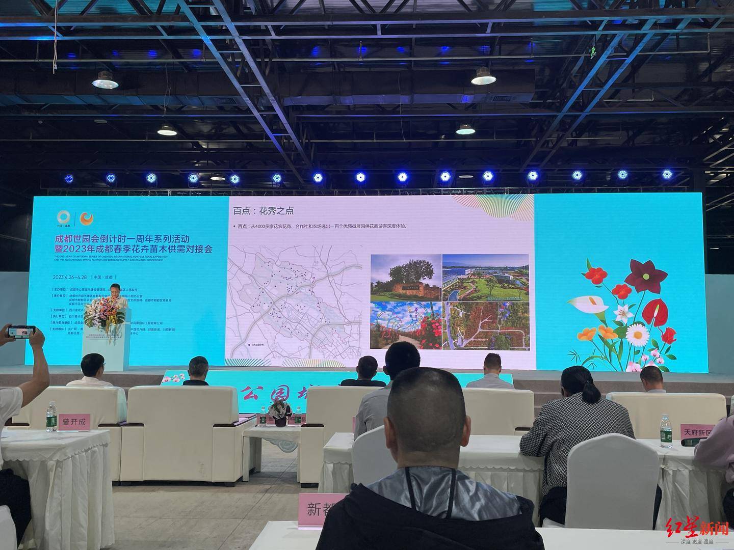 4月26日,成都世园会倒计时一周年系列活动暨2023成都春季花卉苗木供需对接会在成都市郫都区春天花乐园正式开启。