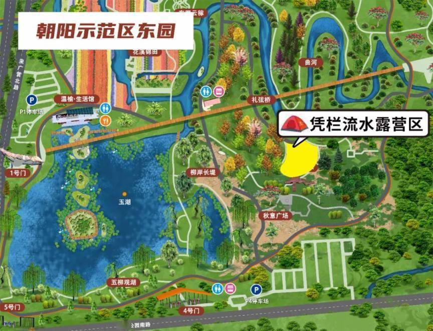 因生态文化中心、浅草地两处大众露营区位于上述封闭区域,为满足市民游客的露营需求,五一假期期间,除开放朝阳示范区东园凭栏流水露营区外,公园特于朝阳段一期悦动森林区开放比翼花海、芳草地两处大众露营空间,期待您的到来!