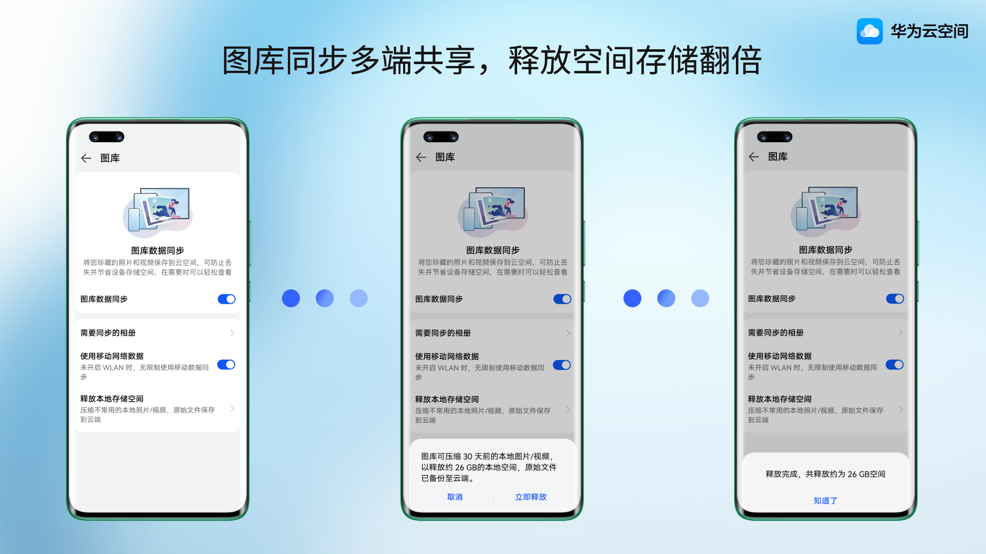 更实用的是,华为云空间还能帮手机“瘦身”,将本地存储空间释放,照片随便拍。开启释放本地存储空间选项后,图库30天前的照片、视频将会被自动释放内存,而原始文件则保存在云端。这意味着,即使每次出游都要拍摄成百上千张美照,也能轻而易举地释放出几十GB的本地空间。再也不用担心照片挤爆空间,有了华为云空间,我们随时随地都能无拘束,随便拍。
