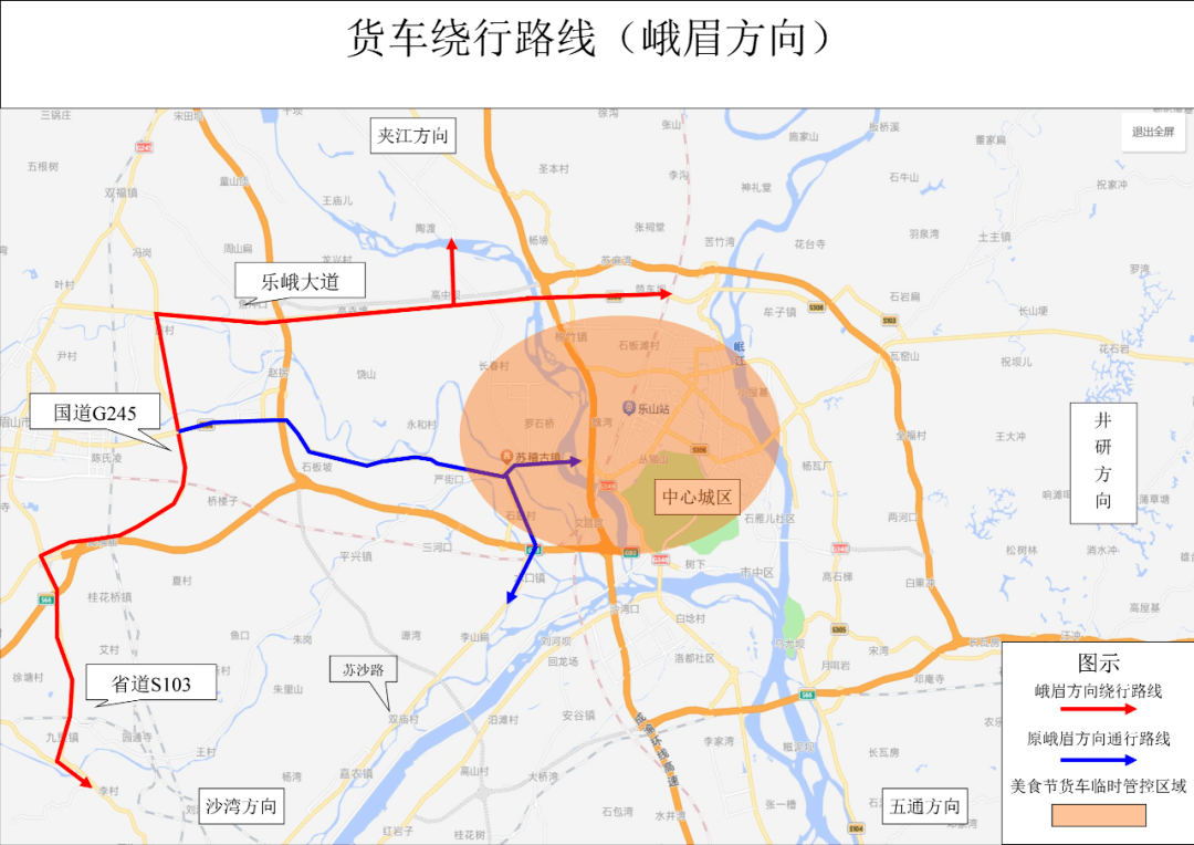 2、往夹江方向:从苏沙路、省道S103线(沙湾至峨眉方向),经国道G245线(夹江方向)或乐峨大道、乐夹大道绕行。