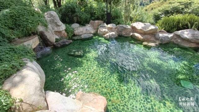 玉溪有着丰富的温泉资源,滇中植物园里的玉溪半山常乐温泉酒店里,丛林山间分布着很多户外泡池,泡着温泉,不但能洗去一天的疲累,花海之美尽收眼底。