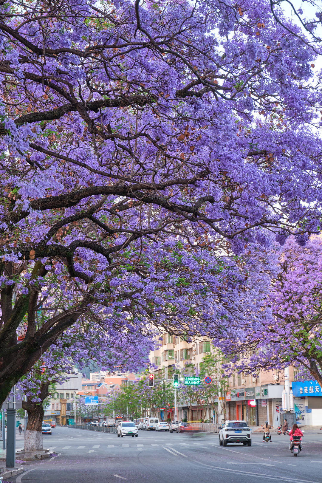 ↑西昌建昌路蓝花楹盛开 图据视觉中国