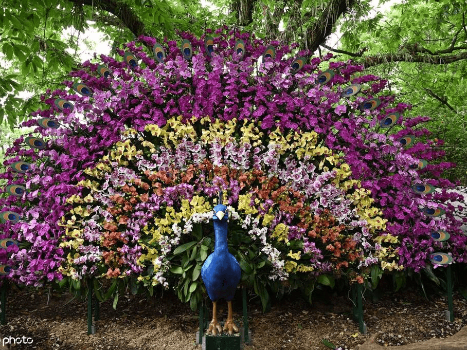 现场通过架构艺术、植物组合造景等手法打造《春兰似锦》《石趣幽兰》《鹦语兰韵》《锦屏兰艳》《“兰”精灵》等6组美轮美奂、造景别致新颖的园林小品。
