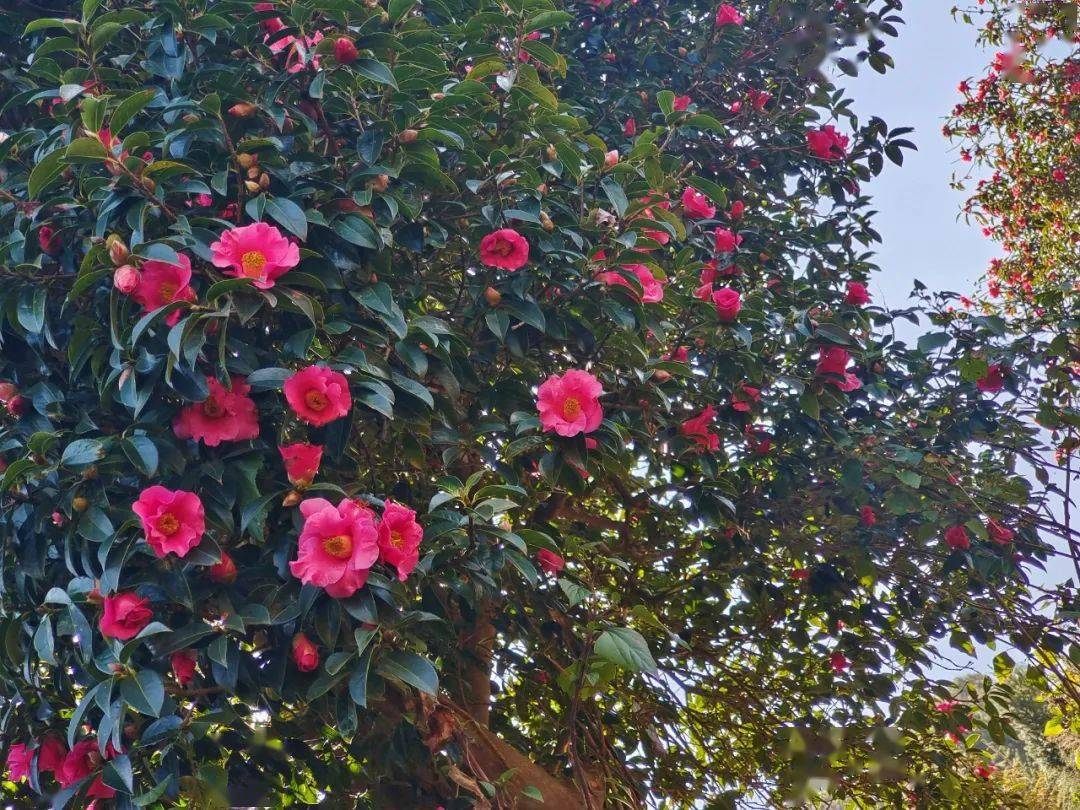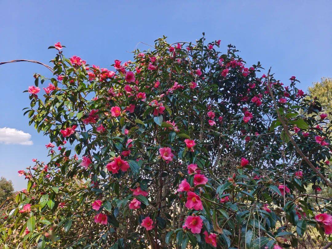 郭沫若曾盛赞:“茶花一树早桃红,百朵彤云啸傲中。”而陆游也有诗云:“东园三日雨兼风,桃李飘零扫地空。唯有山茶偏耐久,绿丛又放数枝红。”