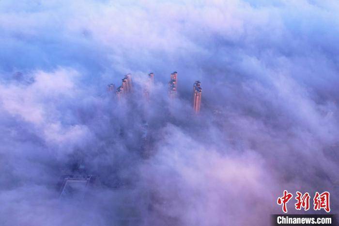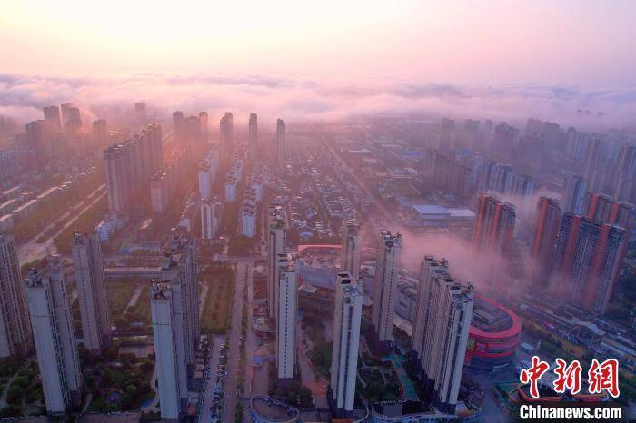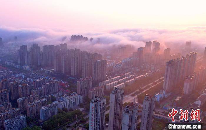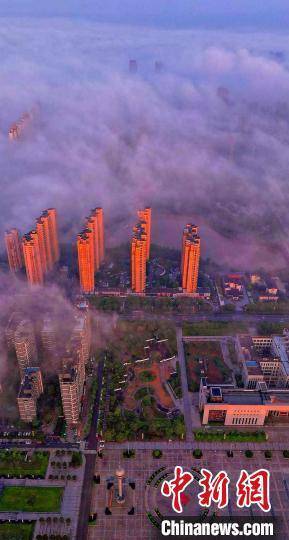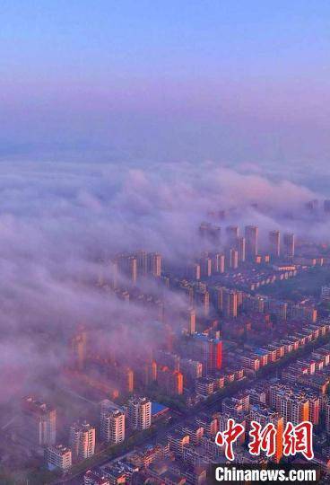图为抚州主城区上空云雾缭绕,城市建筑若隐若现。 熊慧平 摄