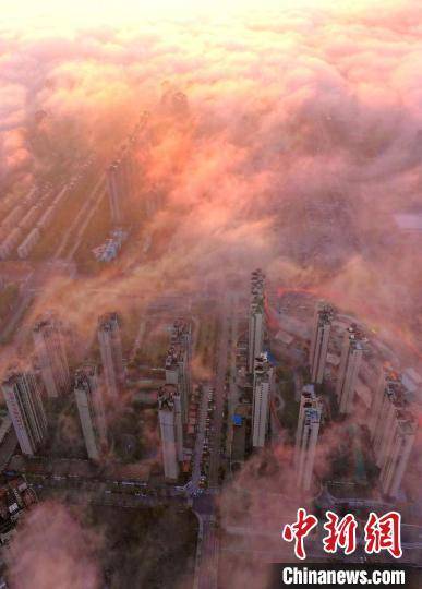图为抚州主城区上空云雾缭绕,金色晨曦洒向大地,城市建筑若隐若现,壮美如画。 熊慧平 摄