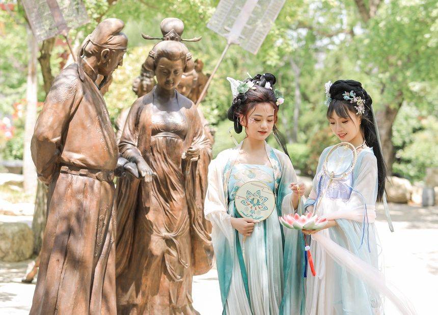 活动期间,华清宫景区招募到的十一位花神与四月牡丹花神杨贵妃一起,共赴春日群芳盛宴,与游客亲切互动。华清宫景区聘请十二花神为“华清推荐官”,持续助力唐宫文化传播。此外,偶遇“白居易”活动正式成为华清宫景区常驻活动之一。有游客从网络了解到此活动,专门赶来背诵《长恨歌》全篇,以期得到免费的舞剧《长恨歌》门票。“春寒赐浴华清池,温泉水滑洗凝脂”“骊宫高处入青云,仙乐风飘处处闻”的朗朗背诗声在皇家园林内咏颂,彷佛让人回到大唐,感受到一千年的风流雅致。