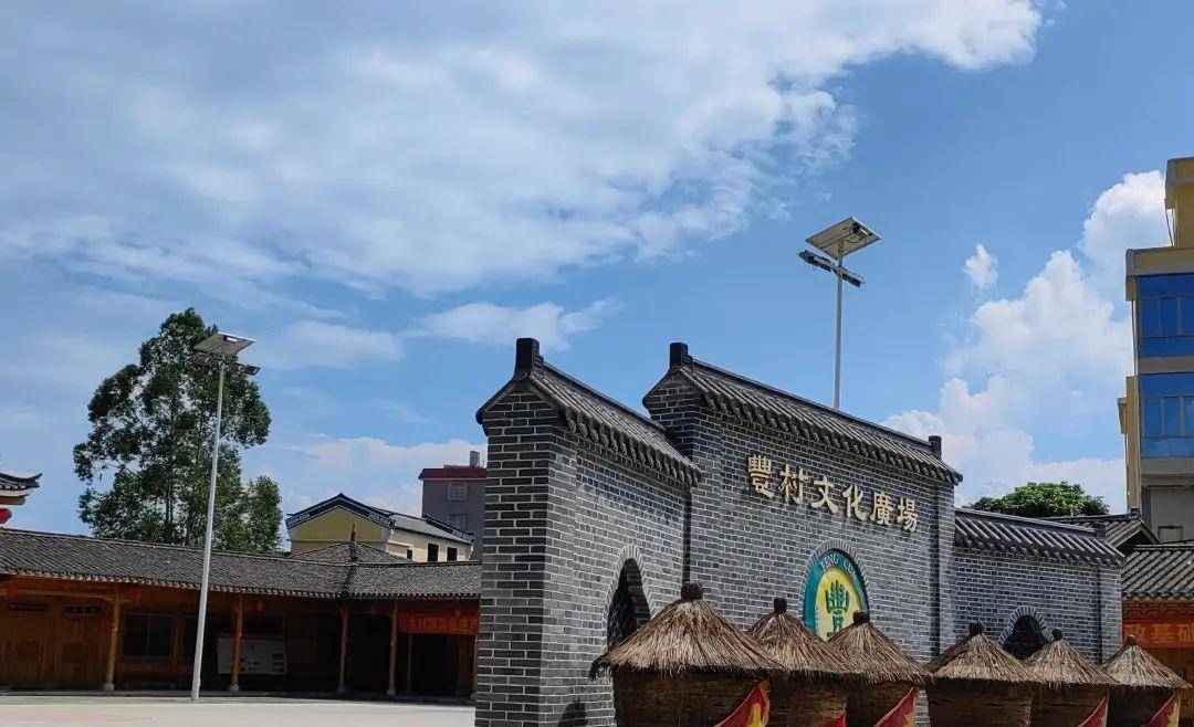 从玉林城区驱车30多公里,即可到达丰村。这是一个坐落在铜石岭脚下,山水环绕的村庄。丰村路干净整洁,一旁的红色文化宣传墙,宣传社会主义核心价值观、战斗英雄、家风等,培养人们的爱国情怀,构建和谐社会。另一旁,青砖、白墙、黛瓦组合而成的围墙,看起来质朴淡雅,树木投下斑驳的影子,岭南风情令人沉醉。