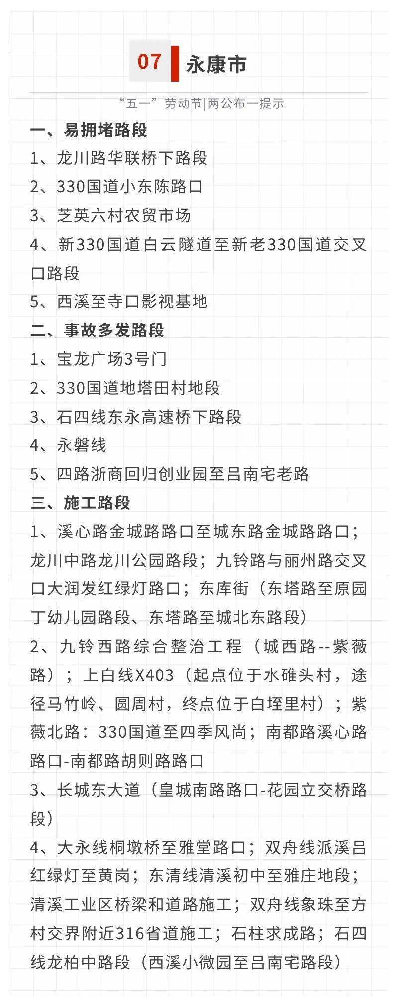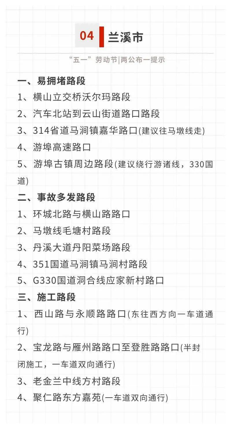4.宁波方向怀鲁枢纽转诸永匝道封闭,提前从东阳下高速至横店;或到蔡宅下高速走S310省道转S211省道至东阳。