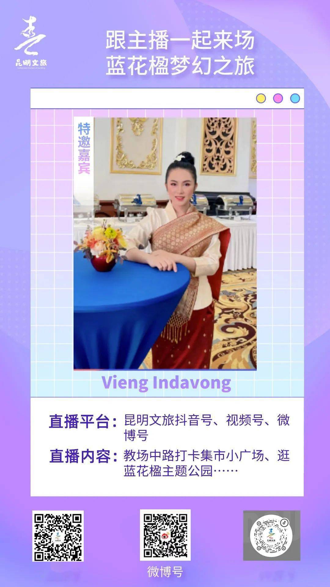 4月27日上午10点,昆明文旅将开启蓝花楹直播活动,并邀请外国语主播来到昆明首条蓝花楹大道教场中路,带大家欣赏蓝花楹盛放美景,让海内外网民足不出户就能在线开启梦幻之旅。