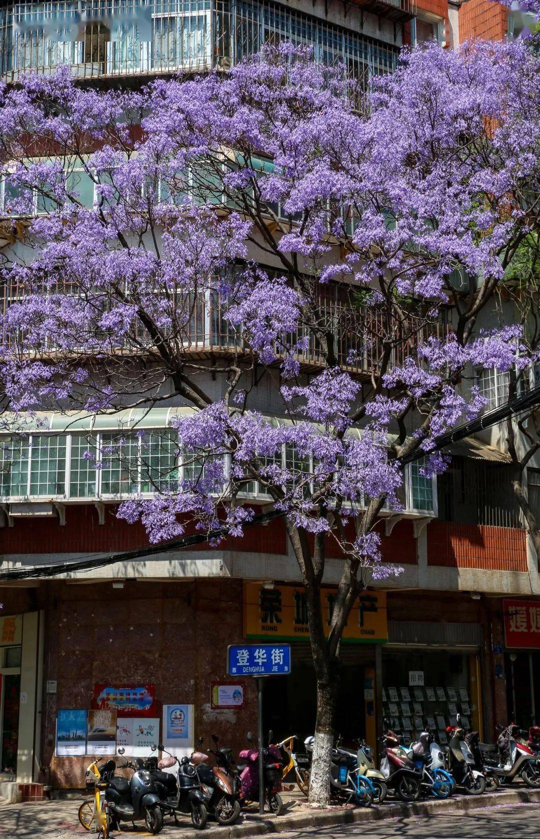 在市妇幼保健院一个右转,意外就进入了登华街的蓝花楹大道,虽然登华街早已经把青石板路改成了水泥地,但是 属于老昆明的气息依然存在。