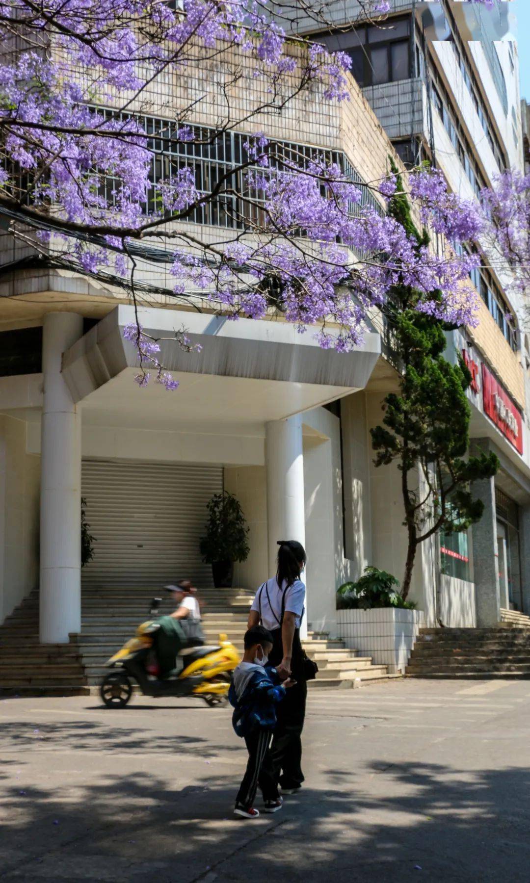 车来人往,每年到这个时候都会引来很多人的驻足,这一看就是还没解锁春城路与永平路交叉口蓝花楹的隐藏拍照地。