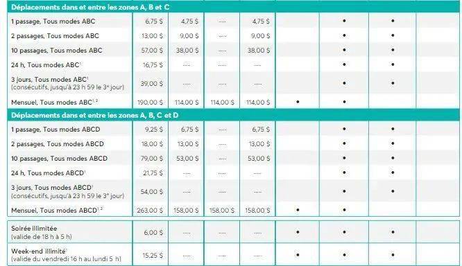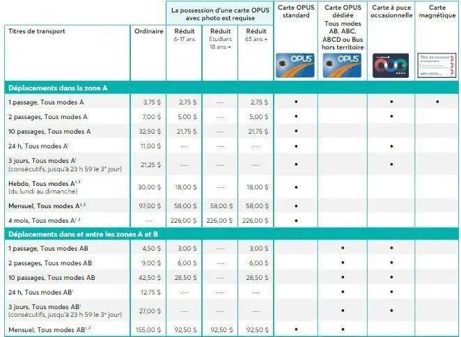 儿童、学生和65岁以上人群有优惠票价。蒙特利尔居民65岁及以上的人从7月1日开始可以免费乘坐公交车和地铁。残疾人士专用交通、通勤火车和REM也包括在此举措中。
