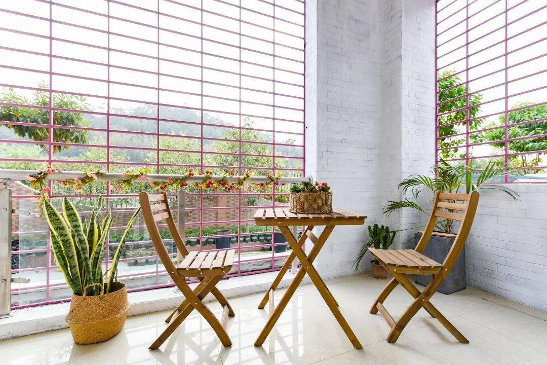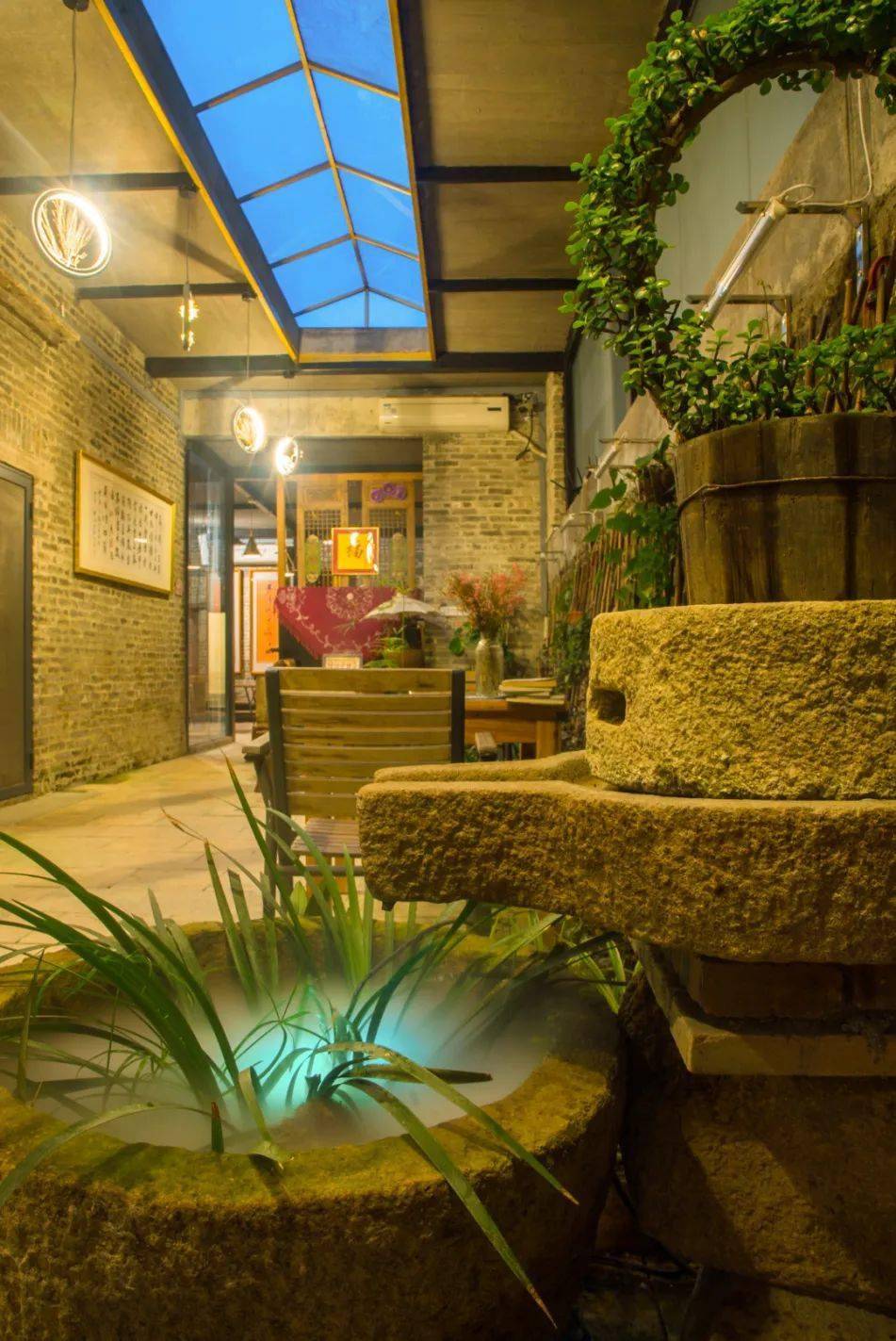 民宿入门后的温室花园的上方是玻璃顶,仰头就能望见天空。夜里灯火阑珊,天气晴朗的时候,可坐在院子里、天井中、阳台上喝茶谈心,数星星,看月亮。